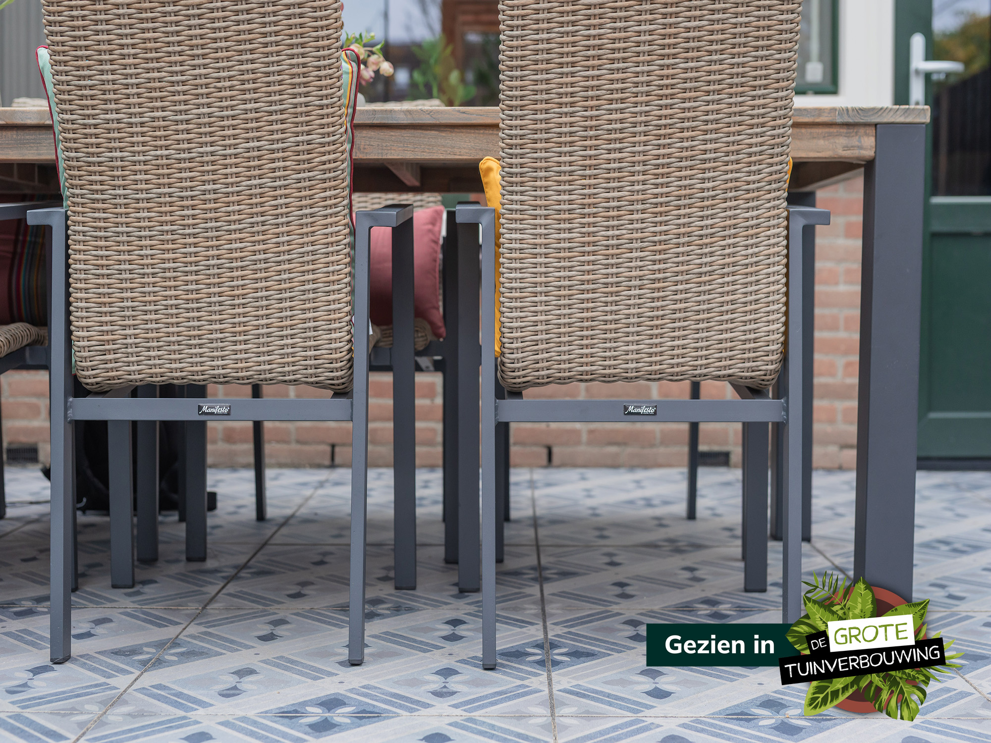 De Manifesto Villongo dining tuinstoel is een stijlvolle aanvulling voor elke tuin of terras. Met zijn handgevlochten wicker zitting in een warme taupe tint en een stevig aluminium frame in charcoal, biedt deze stoel niet alleen een elegante uitstraling, maar ook praktisch gemak. Dankzij het lichtgewicht ontwerp is de stoel eenvoudig te verplaatsen en op te stapelen, ideaal voor als je ruimte wilt besparen. Of je nu een gezellig diner organiseert of gewoon van de zon wilt genieten, deze stoel zorgt voor een comfortabele zitervaring. En wie weet, misschien wordt hij wel je favoriete plek om te genieten van een kopje koffie in de ochtendzon!
