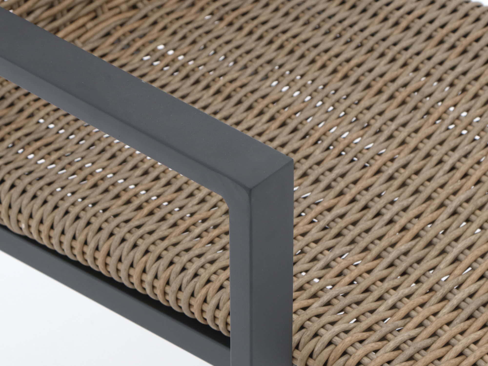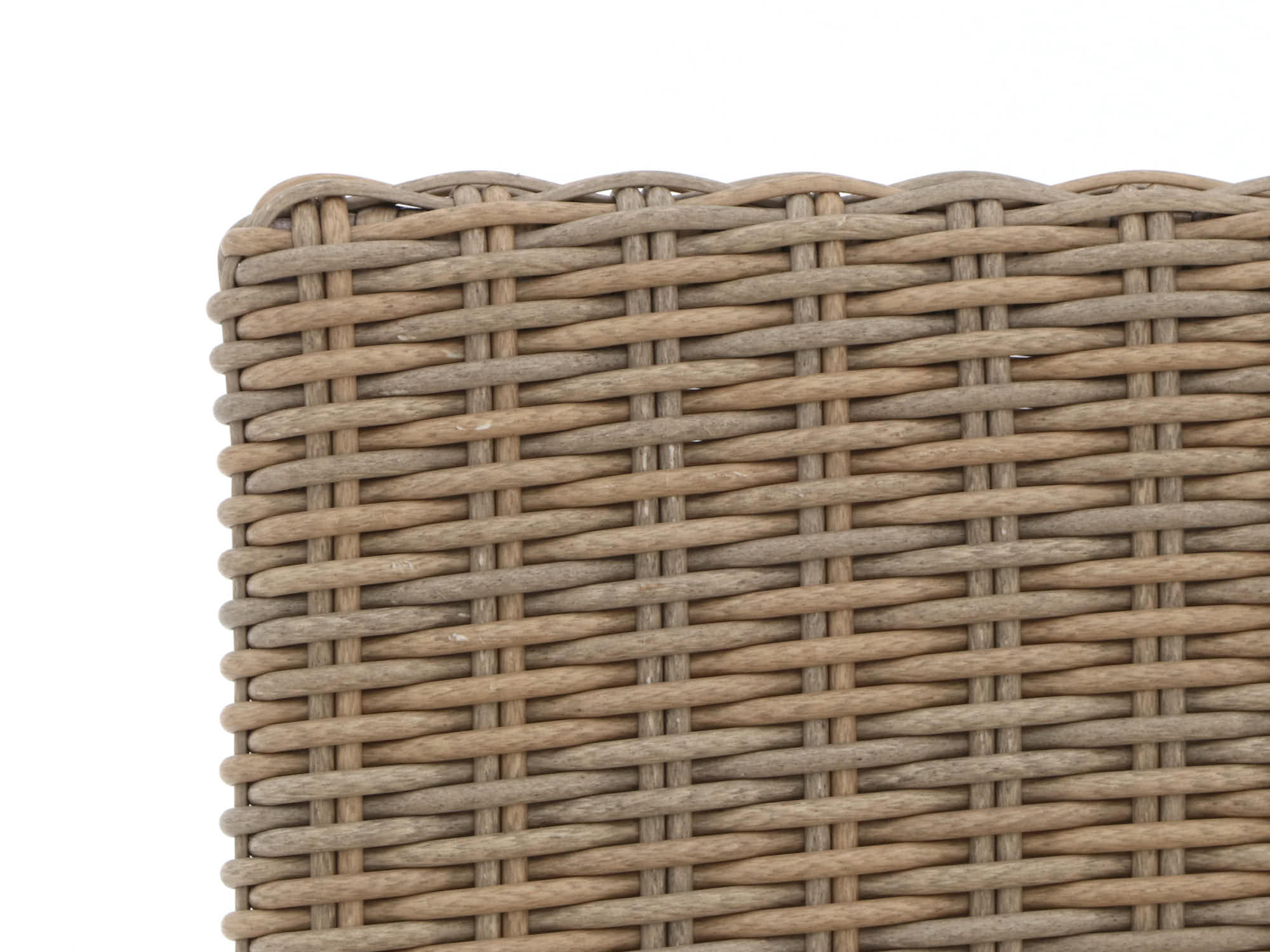 Wicker zitting: Het handgevlochten vlechtwerk is strak afgewerkt en vochtbestendig. Zo blijft het er netjes uitzien, zelfs na een zomerse regenbui.