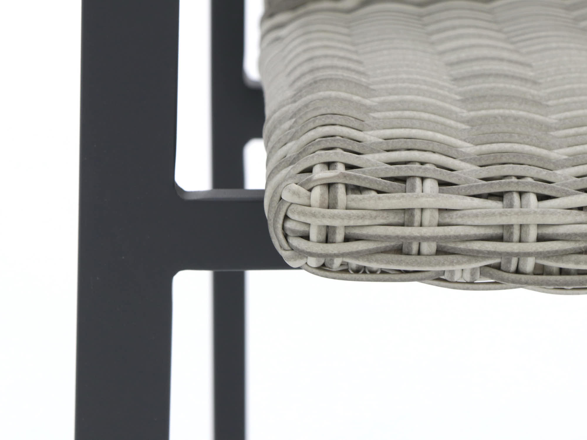 Wicker zitting: De handgevlochten wicker zittingen zijn vochtbestendig en blijven netjes, zelfs na een regenbui. Comfortabel zitten zonder gedoe met kussens die je steeds moet binnenhalen.