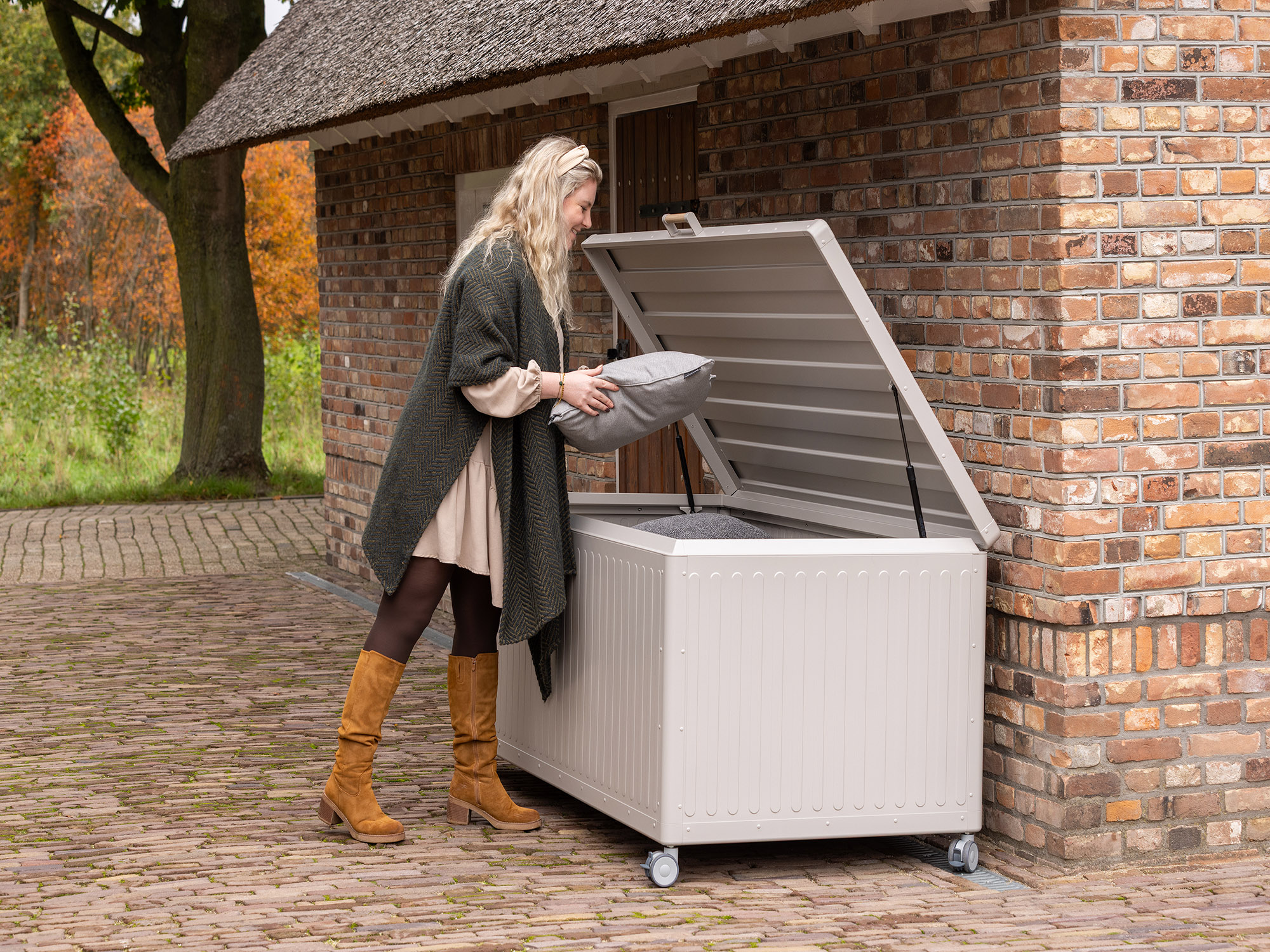 • De opbergbox is volledig waterdicht, dus je kussens kunnen er het hele jaar in blijven liggen