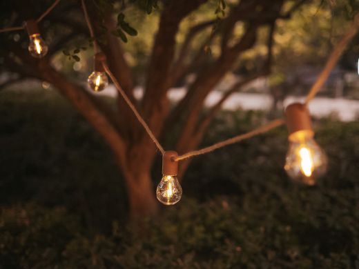 Met deze lichtslinger breng je snel sfeer in je buitenruimte. De 10 warm witte LED-lampjes geven een zachte gloed voor avonden buiten. Het snoer is in totaal 8 meter lang en het eerste lampje zit pas na 3 meter, zodat je de slinger makkelijk kunt ophangen en toch het stopcontact makkelijk bereikt. Het licht is warm wit (2700K) en niet dimbaar, dus je hebt altijd dezelfde warme uitstraling. De lampjes worden meegeleverd, zijn afneembaar en hebben een E27 fitting. Voor buiten onder een afdak zit je goed: de lichtslinger is spatwaterdicht met IP44.