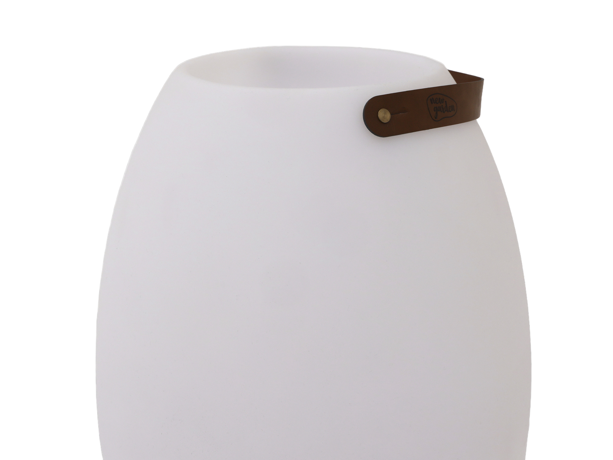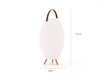 Met de New Garden Apollo buitenlamp maak je van elke avond buiten iets gezelligs, met licht én muziek. Hij is oplaadbaar en draadloos, dus je zet hem neer waar je wil, van de loungehoek tot bij de buitentafel. De lamp is 72,5 cm hoog en 40 cm in doorsnee; een formaat dat opvalt maar je tilt hem zo op dankzij het handvat van vegan leer en bamboe. Kies wit licht of kleur, dim het naar wens en bedien alles met de afstandsbediening. Met de ingebouwde bluetooth speaker staat je playlist in no time aan. Je kunt twee Apollo's aan elkaar koppelen voor meer geluid rondom. IP44 betekent spatwaterdicht, dus fijn voor onder je overkapping of balkon. Op één lading brandt hij tot 20 uur en opladen gaat via de meegeleverde USB-C kabel.