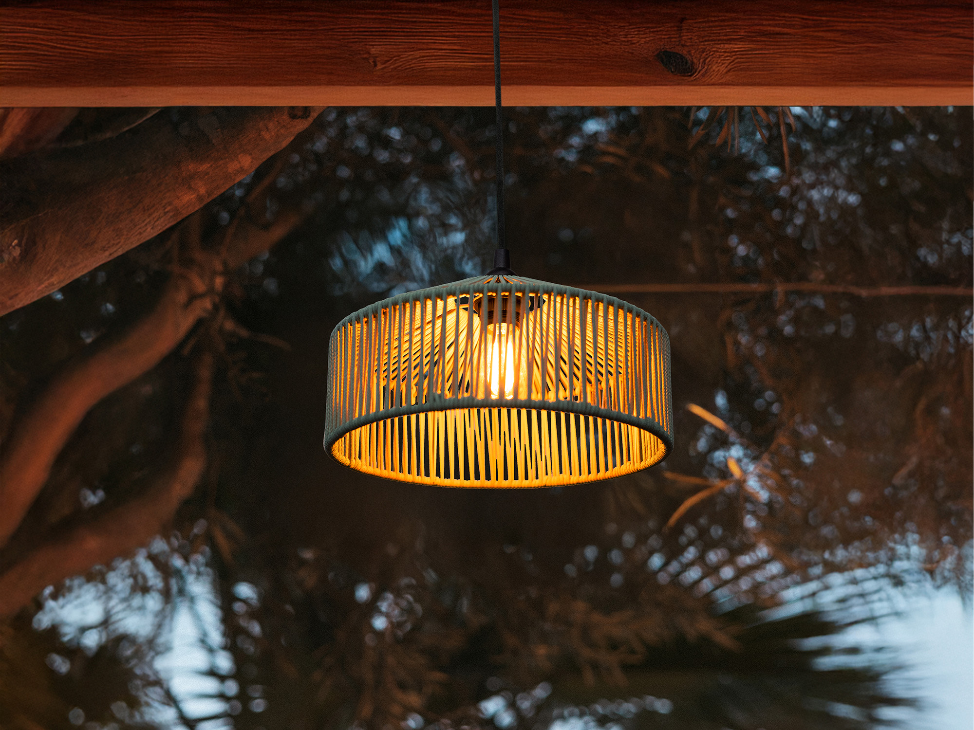 Avondborrel onder de overkapping? Deze hanglamp in Green geeft meteen gezellig licht boven de tafel. De kap is 30 cm in doorsnee en 15 cm hoog, compact en makkelijk te plaatsen. Met de 5 meter textielkabel hang je haar precies waar je licht wilt. IP44 betekent spatwaterdicht, dus ideaal voor buiten onder een afdak. De E27 fitting zit al aan de kabel; je draait er zelf een lichtbron in. Zo regel je in een paar tellen de juiste sfeer voor een rustige ochtend of een lange zomeravond.