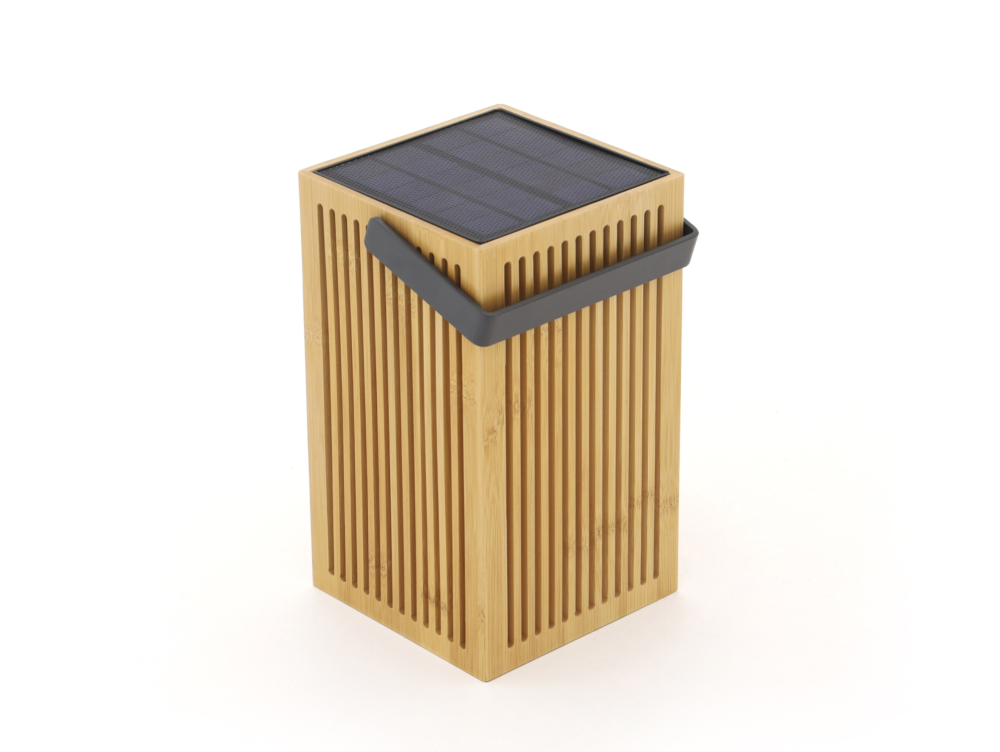 Een gezellige avond buiten wordt net wat langer met deze bamboe lantaarn in natural tint. Compact van formaat en 24 cm hoog, dus hij past zo op de tuintafel of naast je stoel. De geïntegreerde led geeft warm wit licht van 3000K, fijn voor een ontspannen sfeer. Hij kan ook flink fel met 900 lumen, en je dimt hem weer terug naar zacht als je wilt. Opladen kan heel makkelijk in de zon of met de meegeleverde USB Micro kabel. Op een volle lading brandt hij zo 6 tot 20 uur, afhankelijk van de stand. Dankzij IP54 kan hij gewoon buiten blijven staan.