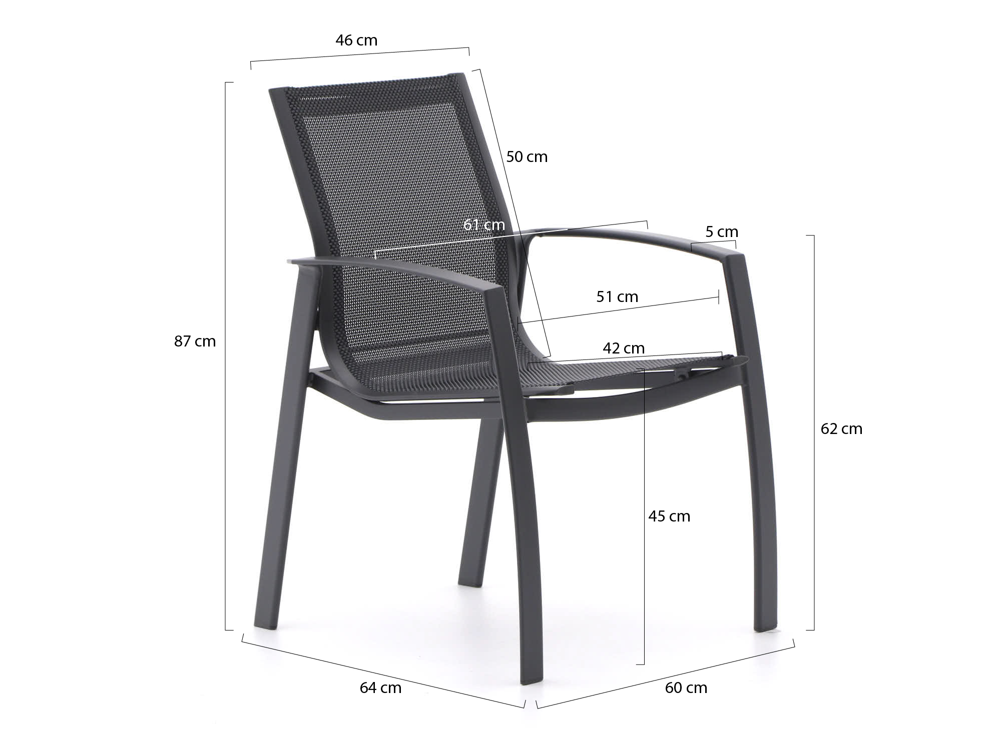 • Textileen zitting: De zittingen vormen zich naar je lichaam, zodat je ook zonder kussens prettig zit tijdens een lange barbecue.
