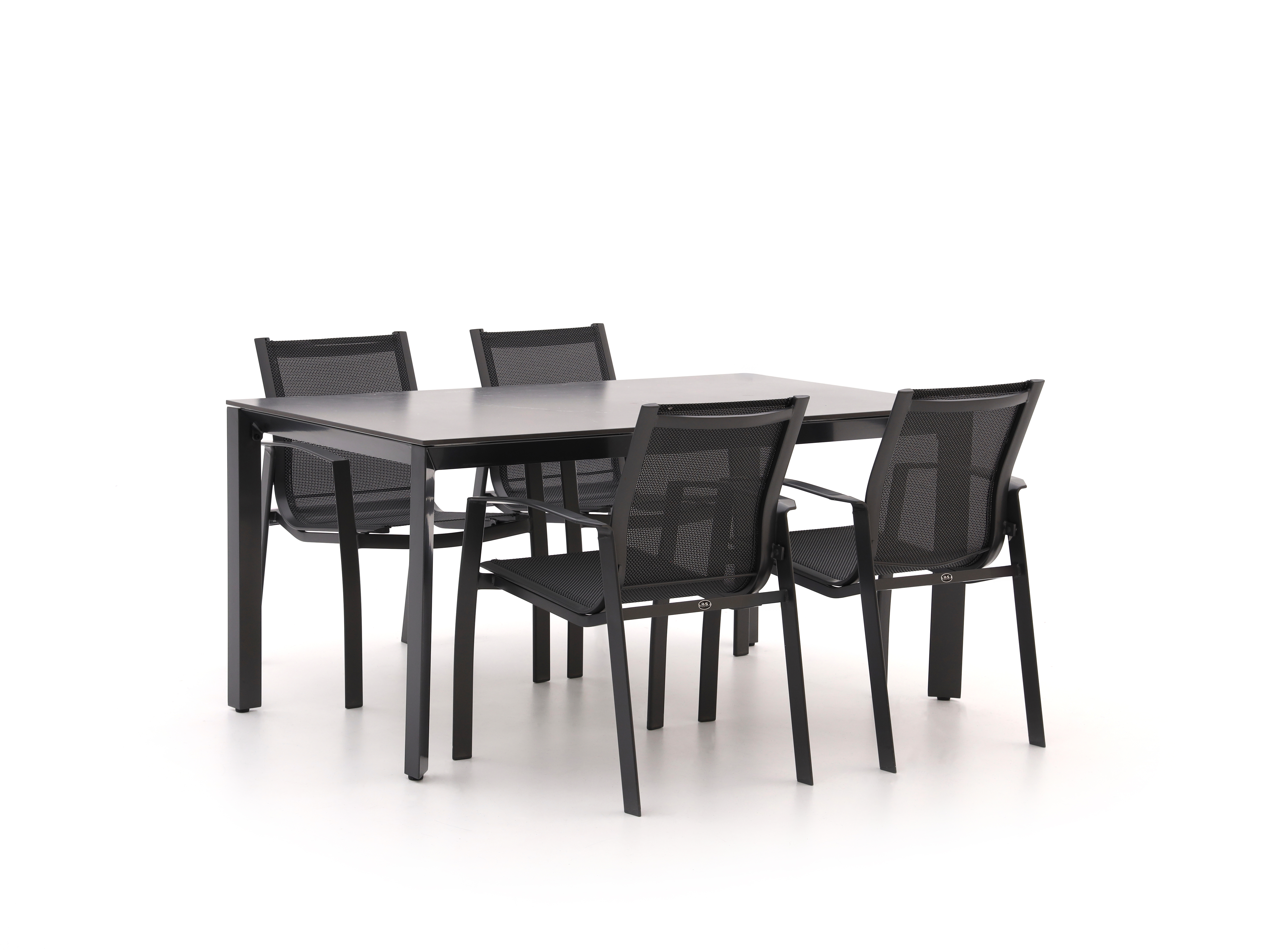 Als je op zoek bent naar een tuinset die zowel praktisch als stijlvol is, dan is de R&S Design Altea/Sestino set een goede keuze. Deze set biedt plaats aan vier personen en heeft een strak zwart design dat in elke tuin past. Het tafelblad is gemaakt van sintered stone, wat betekent dat het kras- en vlekbestendig is. De stoelen zijn stapelbaar, wat handig is als je ze wilt opbergen. Het aluminium frame zorgt ervoor dat de set onderhoudsarm is en lang meegaat.