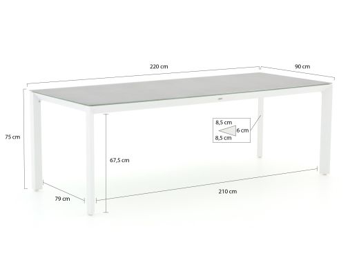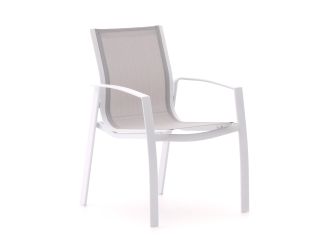 Met de R&S Design Altea/Veneto dining tuinset haal je een stijlvolle en praktische aanvulling voor je tuin in huis. Deze 7-delige set, uitgevoerd in een frisse witte kleur, biedt plaats aan zes personen en is ideaal voor lange zomerse avonden met vrienden of familie. Het tafelblad heeft een moderne keramische uitstraling, maar is gemaakt van krasvast glas, wat niet alleen mooi oogt, maar ook makkelijk schoon te maken is. De stoelen zijn stapelbaar, wat betekent dat je ze eenvoudig kunt opbergen als je wat extra ruimte nodig hebt. Dankzij het aluminium frame zijn zowel de tafel als de stoelen licht van gewicht, roestvrij en onderhoudsarm. Zo kun je meer tijd besteden aan genieten en minder aan schoonmaken.