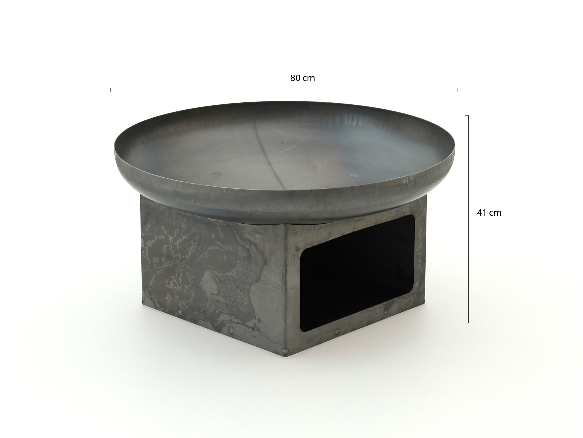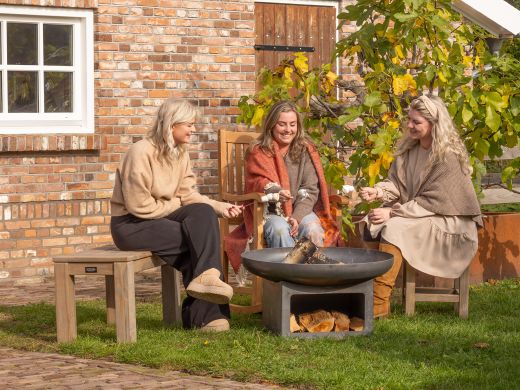 Start met kleine houtjes of een aanmaakblokje om het vuur rustig op te bouwen. Voeg daarna grotere blokken toe voor een mooi en constant vlammenspel. Door het grotere formaat kun je makkelijk wat extra hout kwijt, zonder dat het vuur verstikt. Zet de schaal op een ondergrond die tegen hitte kan, zoals steen of tegels. Zo voorkom je beschadiging van gras of hout. Na gebruik laat je de schaal volledig afkoelen. Daarna kun je hem verplaatsen of schoonmaken. Het staal is onbehandeld en gaat op den duur roesten, wat normaal is. Wil je ‘m netjes houden? Zet ‘m na gebruik beschut weg.