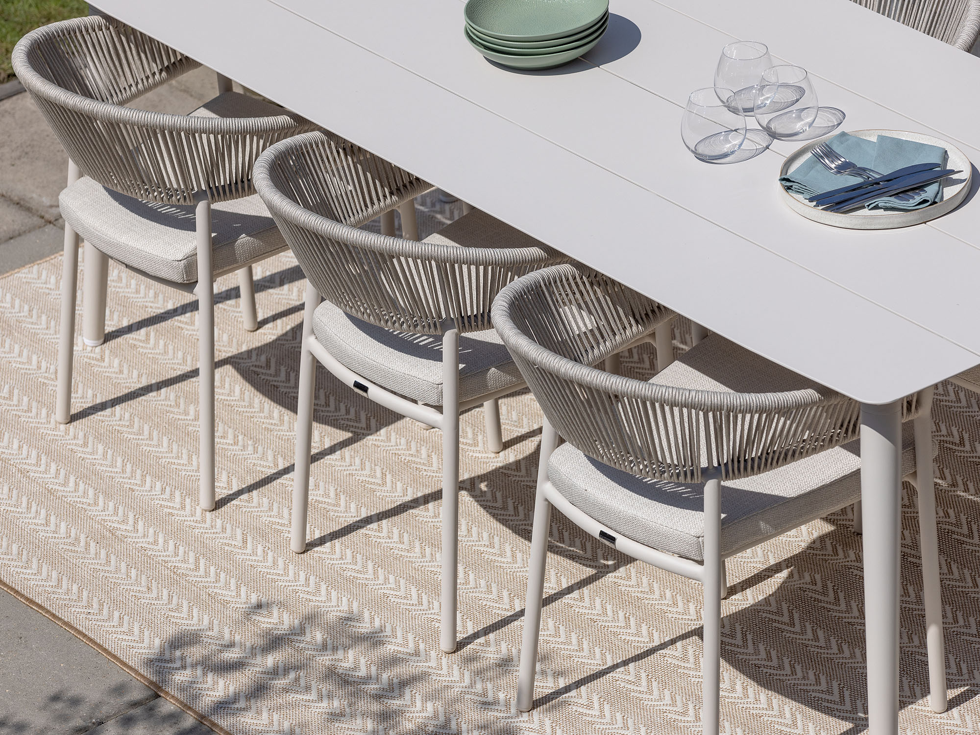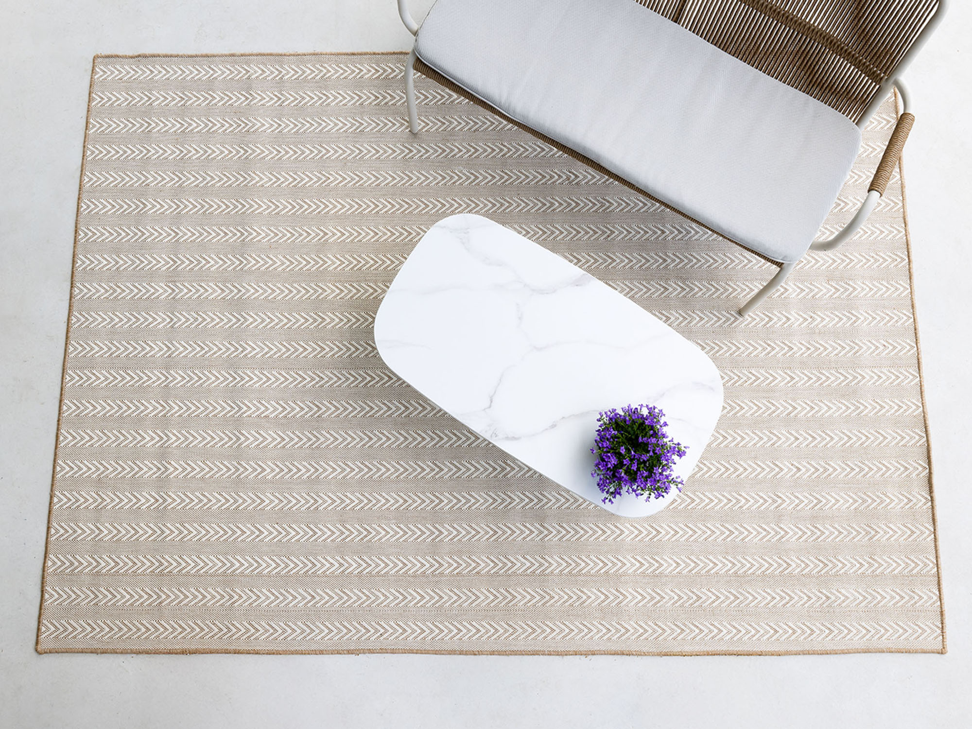 Zon, regen of kou: het kleed blijft gewoon liggen en ziet er nog steeds fris uit. Dankzij de UV- en weerbestendige materialen hoef je niet bang te zijn voor verkleuring of schimmel.