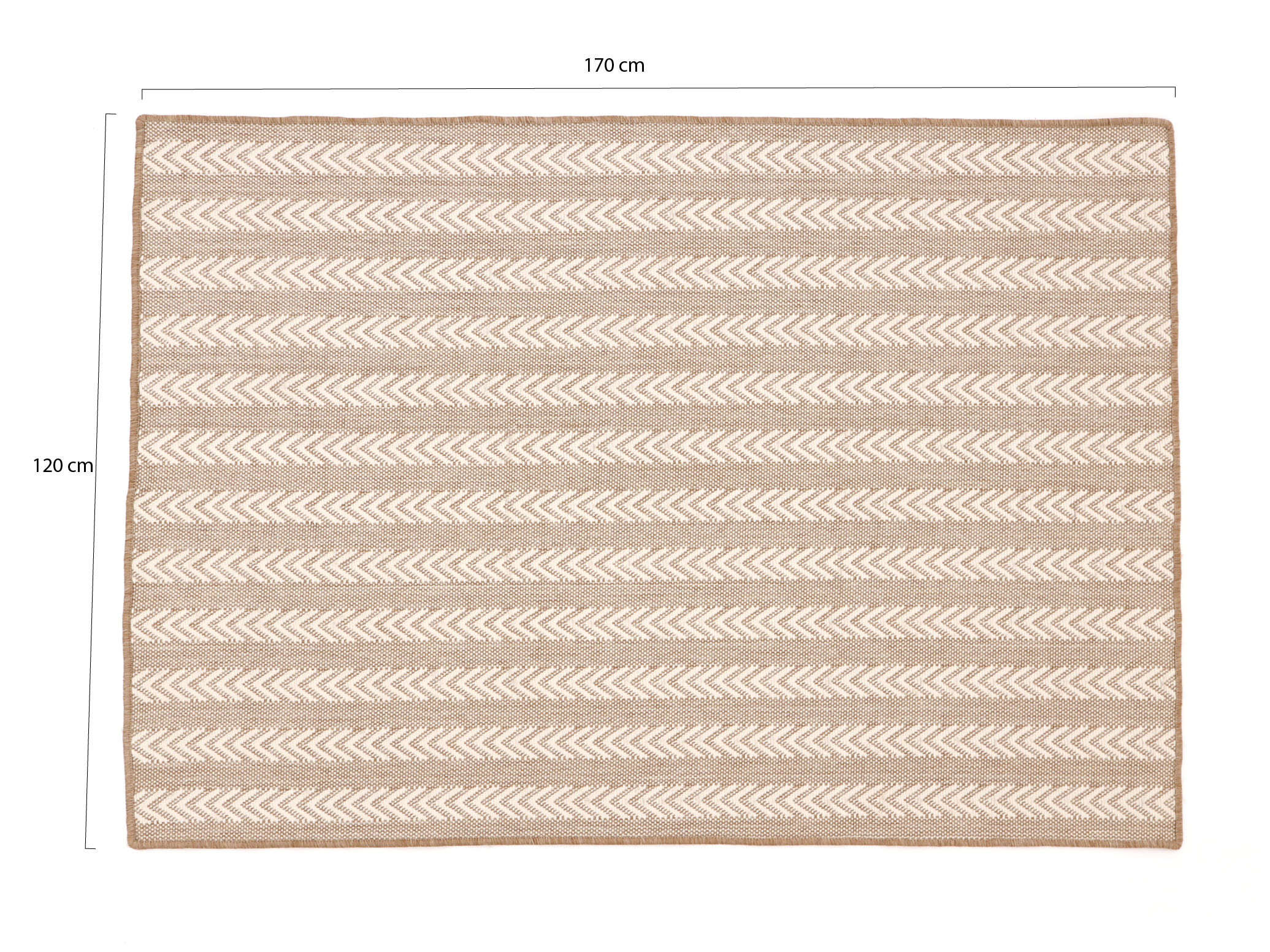 Wil je je tuin, balkon of terras een knusse en stijlvolle uitstraling geven? Met het Rodrigo buitenkleed 120x170cm in de kleur visgraat naturel/wit creƫer je in een handomdraai een gezellige sfeer. Dit kleed is niet alleen een mooie toevoeging aan je buitenruimte, maar ook ontzettend praktisch. Perfect voor onder een loungeset, eettafel of gewoon als blikvanger op je terras!