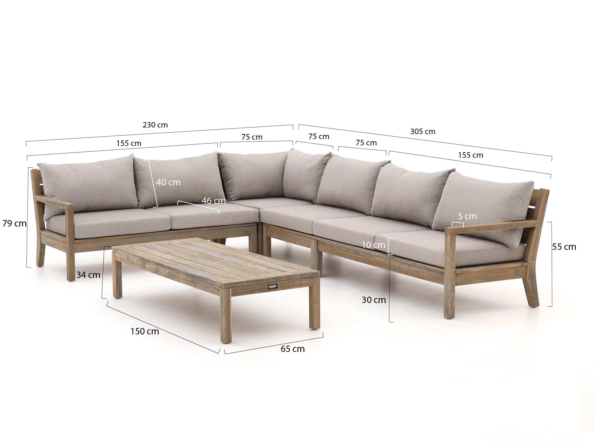 Belangrijk om te weten: deze loungeset is voorzien van een Old teak greywash behandeling. Wij raden aan om de loungeset af te nemen met een natte doek na aflevering om stof te verwijderen. Een grondige reiniging is in het eerste jaar bij Old teak greywash niet nodig, omdat je hiermee de grijze laag kan aantasten.