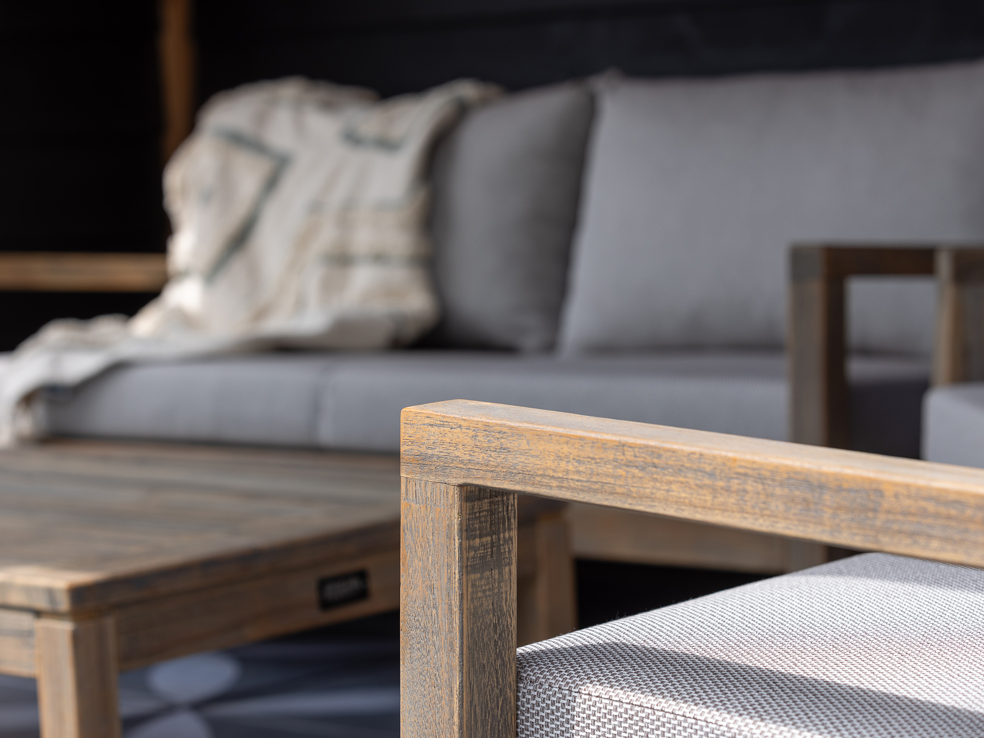• Teakhouten frame: sterk natuurproduct dat het hele jaar buiten kan staan