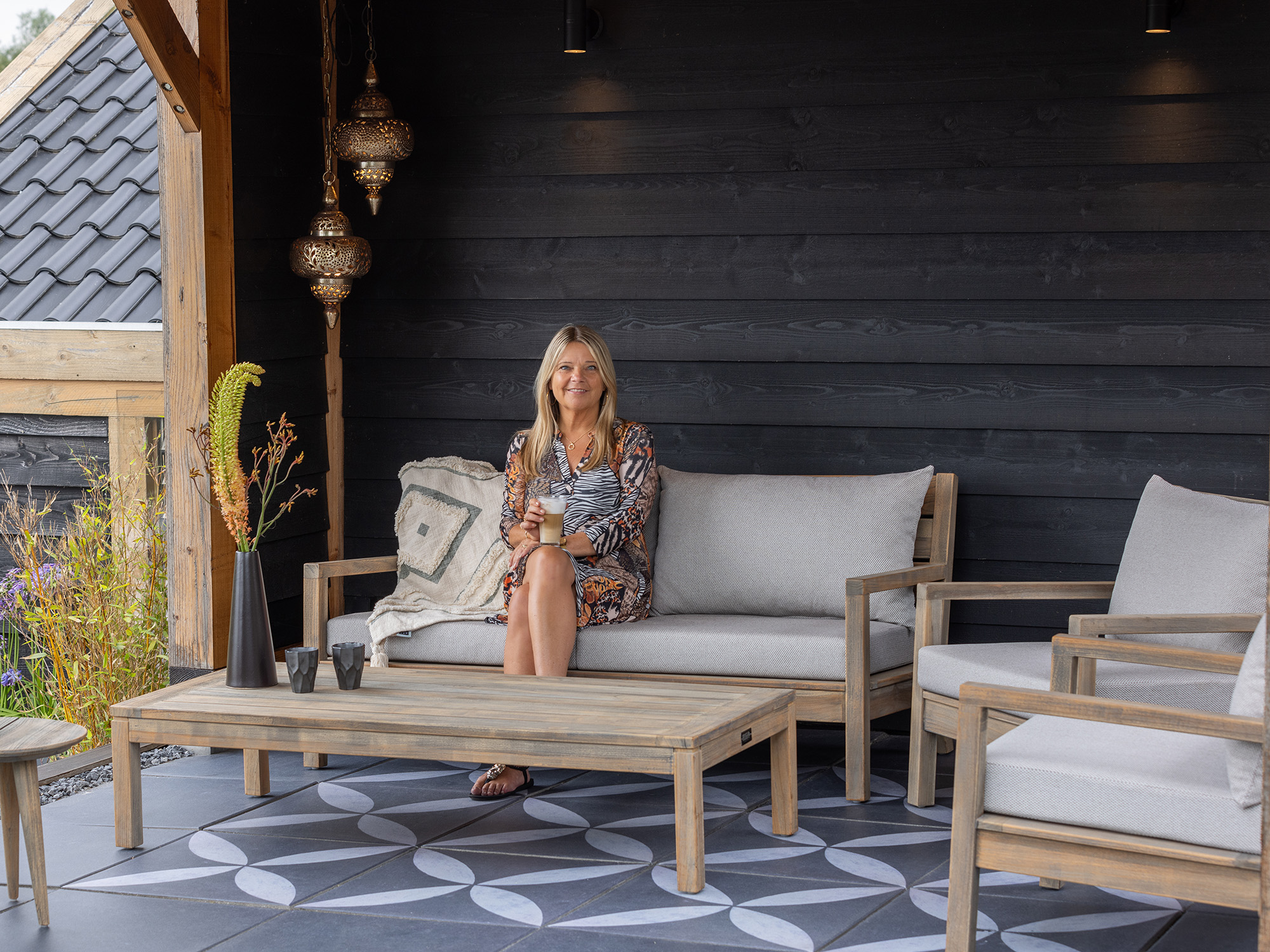 • Volledig teakhout: Een sterk natuurproduct dat het hele jaar door buiten kan staan, wel zo makkelijk als je niet ieder seizoen wilt slepen.