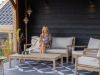 • Old teak greywash kleur: De grijze houtkleur geeft een rustige, tijdloze look die makkelijk combineert met kussens en stoelen in allerlei kleuren.