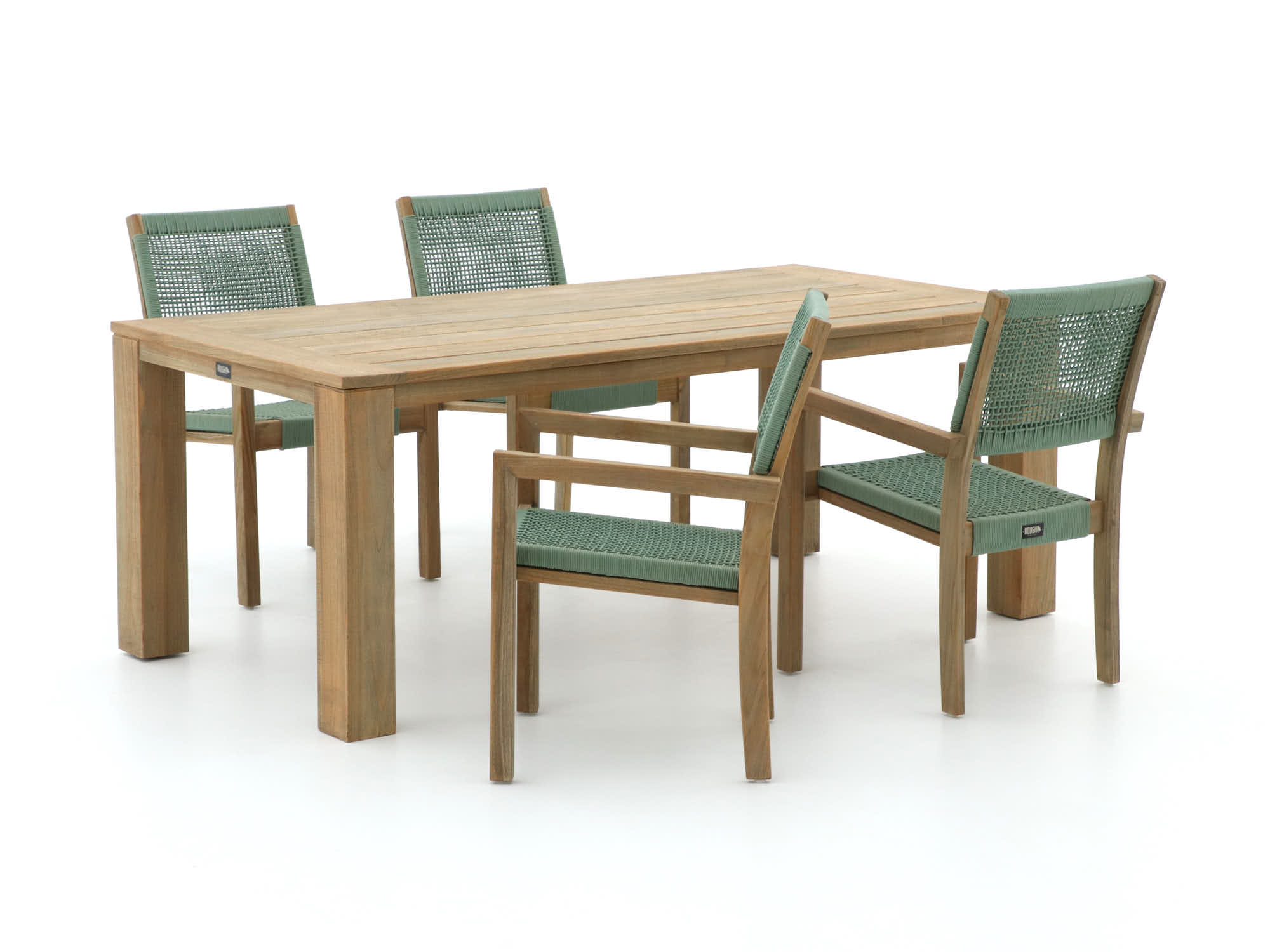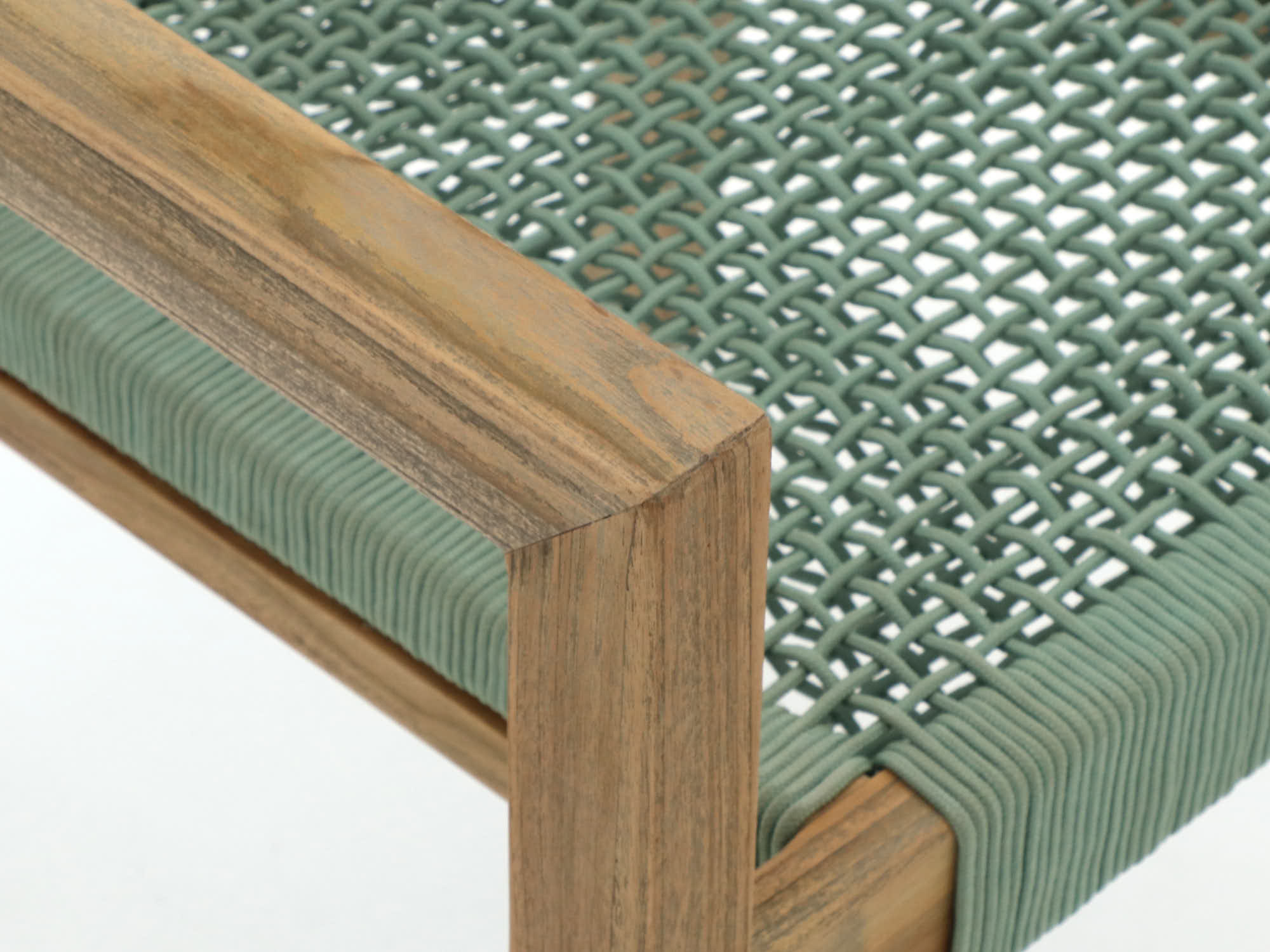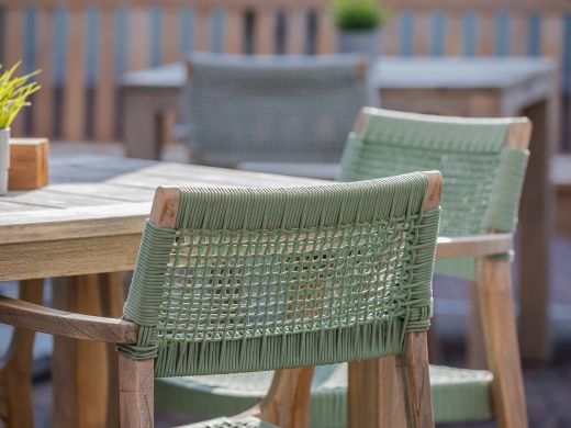 Rope zitting: De Cross Woven Patina Groen rope zitting droogt snel en blijft koel in de zon, ideaal voor warme zomerdagen.