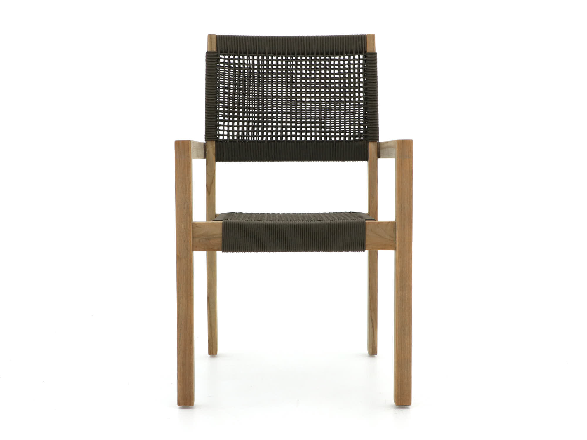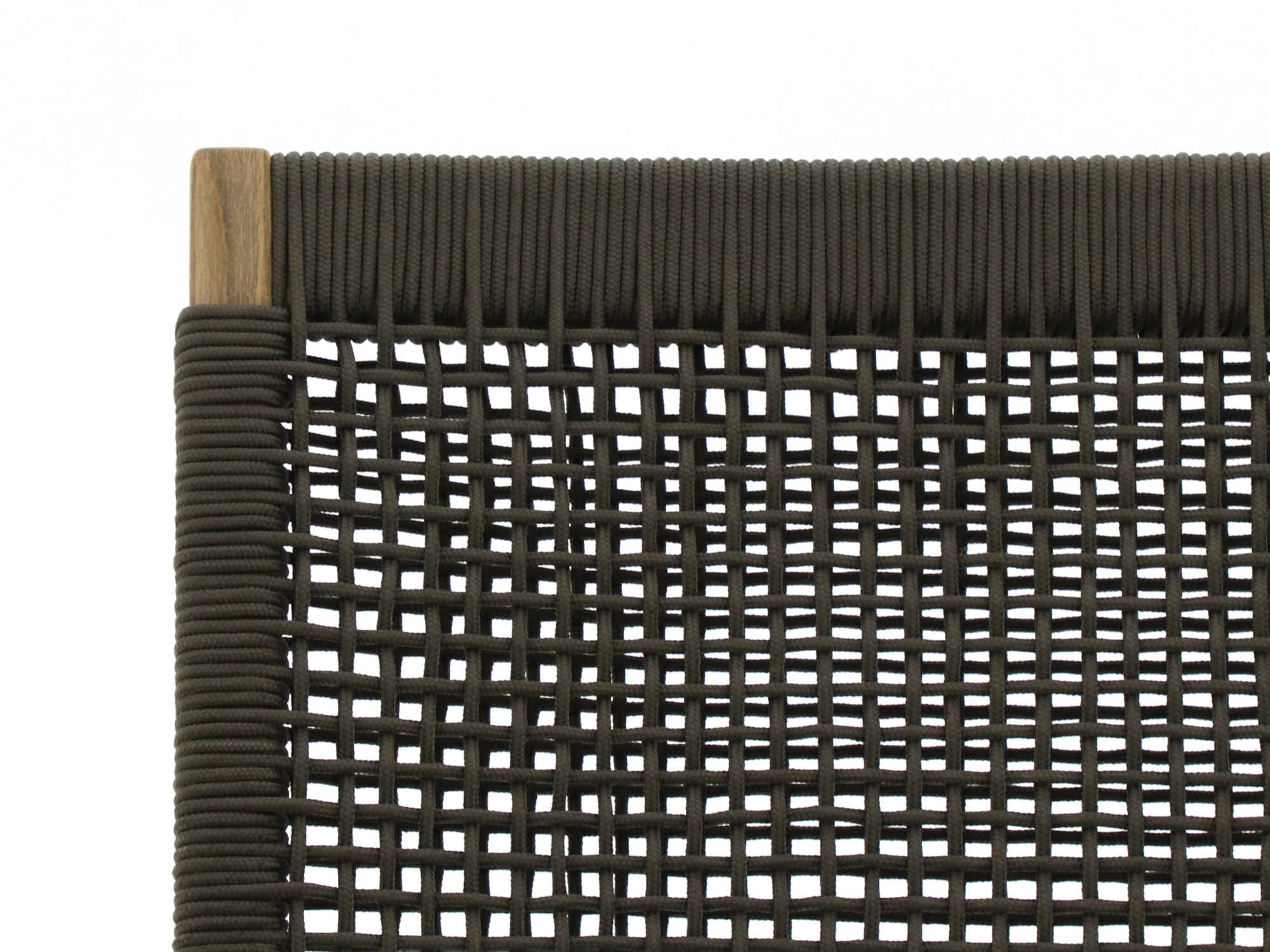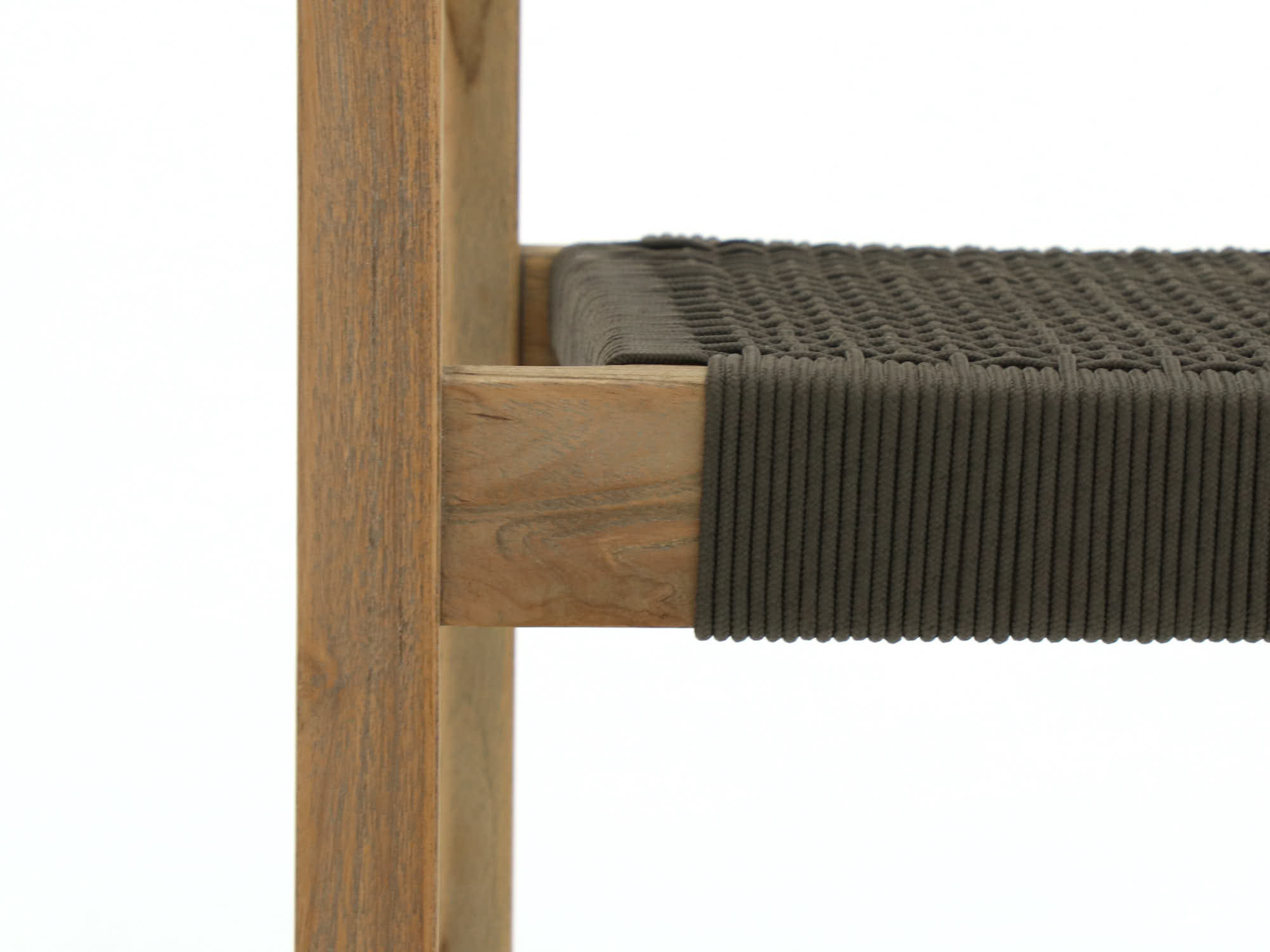 Cross Woven Rope zitting: De zitting van de stoelen is gemaakt van stevig geweven touw dat snel droogt en koel blijft in de zon, ideaal voor warme zomerdagen.