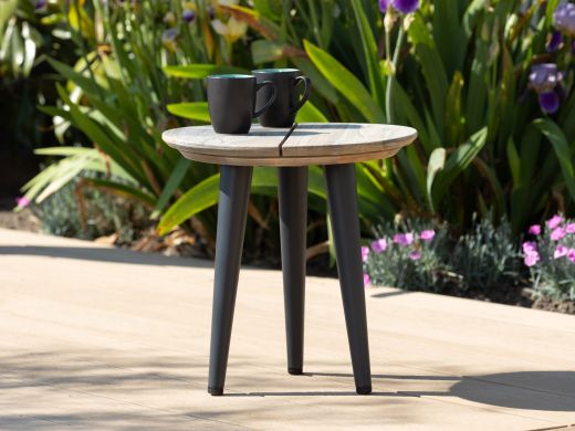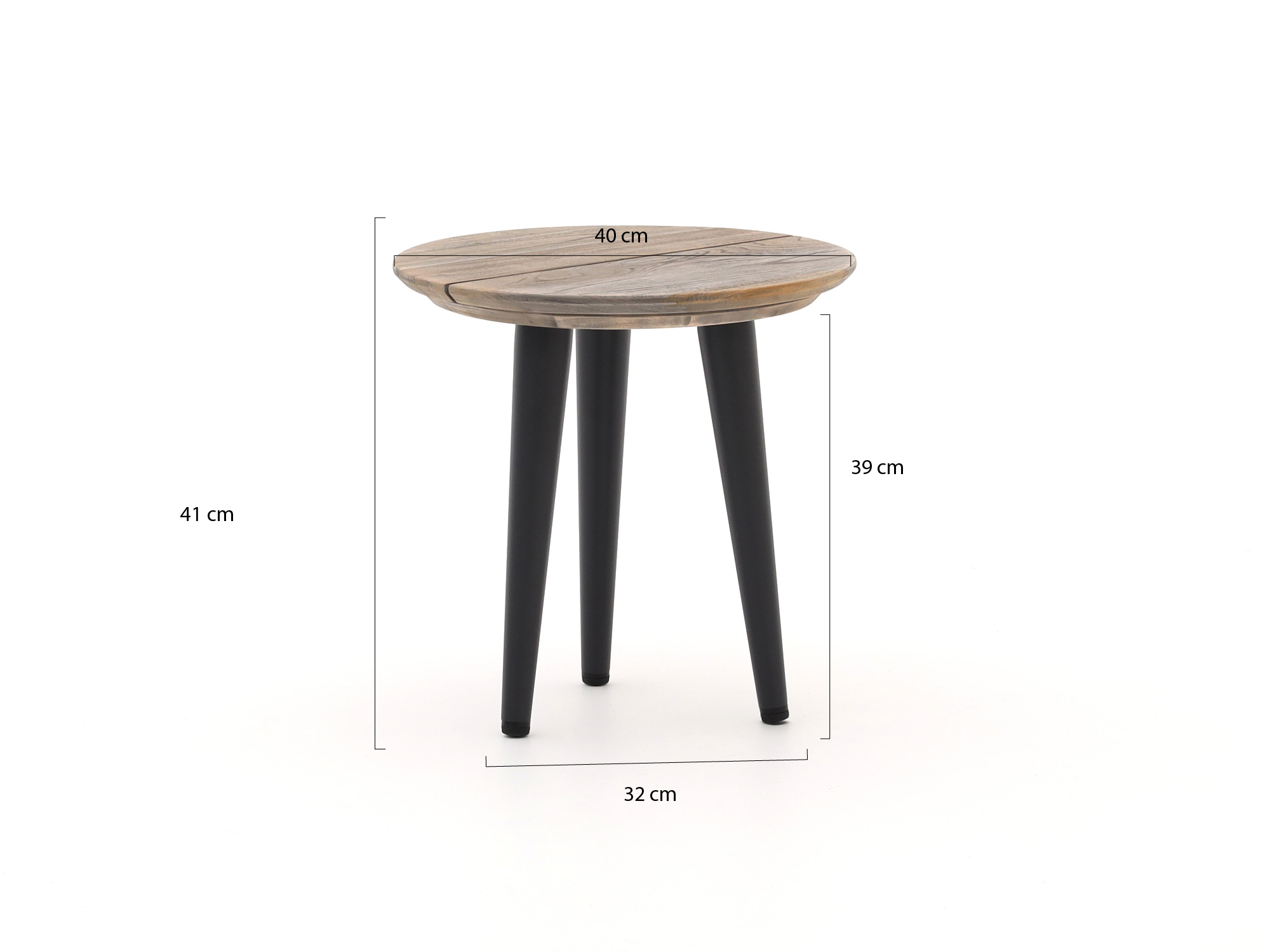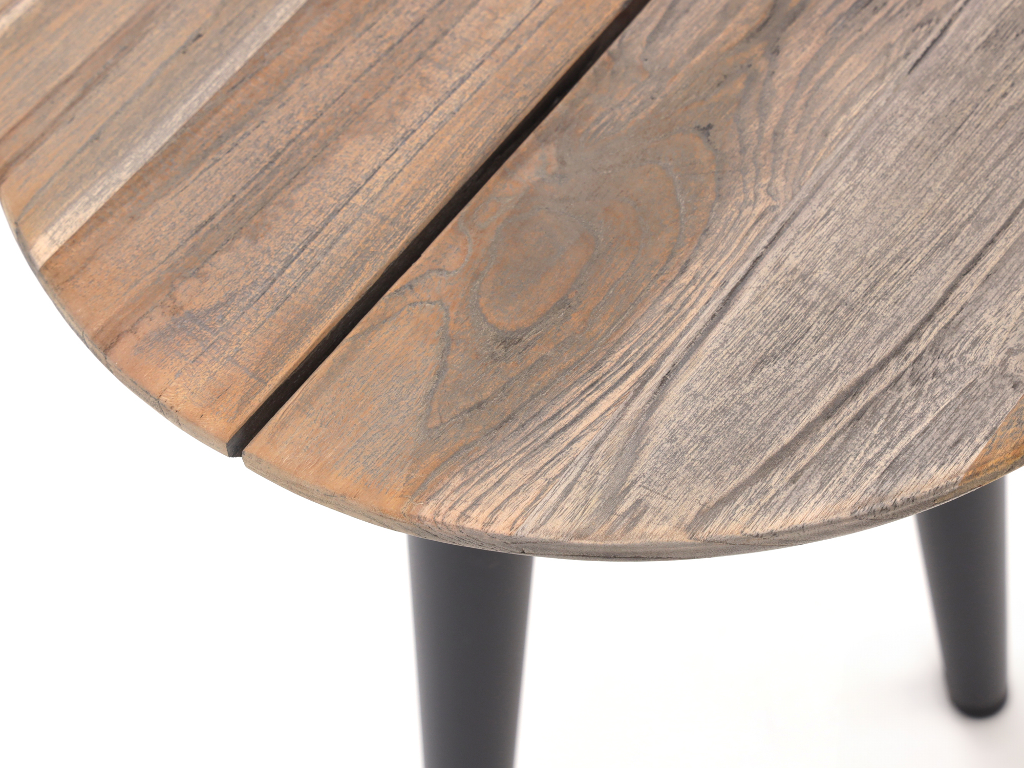 De ROUGH-K bijzet tuintafel is een stijlvolle en praktische aanvulling voor je tuin of terras. Met zijn compacte ronde vorm en een diameter van 40 cm, is deze tafel perfect om je drankje of boek op te plaatsen terwijl je geniet van de zon. Het tafelblad is gemaakt van Old Teak Greywash, wat niet alleen een warme uitstraling geeft, maar ook bestand is tegen alle weersomstandigheden. Het aluminium onderstel zorgt ervoor dat de tafel licht van gewicht is en eenvoudig te verplaatsen. Deze bijzettafel is een geweldige keuze voor wie op zoek is naar een combinatie van stijl en functionaliteit. Zet 'm neer waar je maar wilt en geniet van het gemak dat deze tafel je biedt!