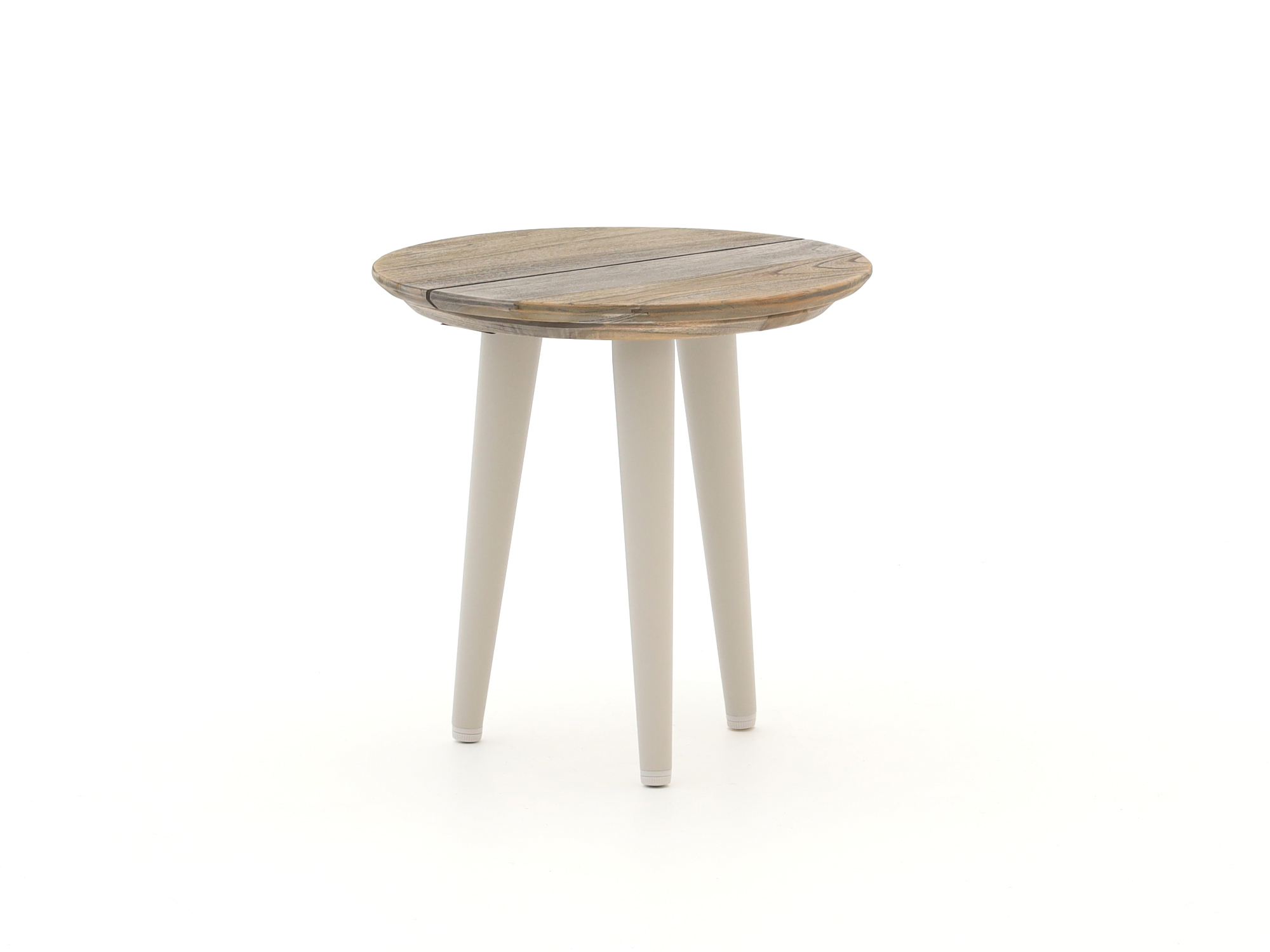 De ROUGH-K bijzet tuintafel is een stijlvolle en praktische aanvulling voor elke tuin. Met zijn compacte ronde vorm en een diameter van 40 cm, past deze tafel perfect naast je favoriete tuinstoel of loungestoel. Het tafelblad is gemaakt van Old Teak Greywash, wat niet alleen een prachtige uitstraling geeft, maar ook bestand is tegen alle weersomstandigheden. Het aluminium onderstel zorgt ervoor dat de tafel licht van gewicht is en eenvoudig te verplaatsen. Of je nu een kopje koffie wilt neerzetten of een boek wilt lezen, deze bijzettafel is er klaar voor. Ideaal voor die zonnige dagen in de tuin!