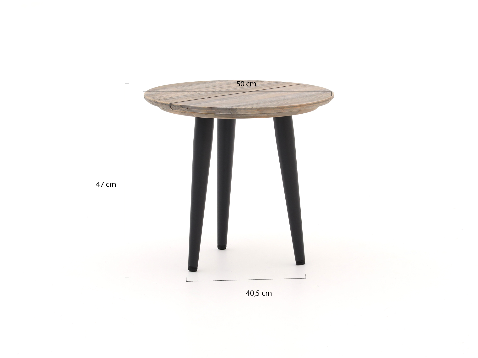 Teakhouten blad: Het blad is gemaakt van teakhout met een Old Teak Greywash afwerking, wat zorgt voor een natuurlijke look en is bestand tegen alle weersomstandigheden.