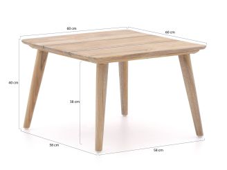 Compact en veelzijdig: Met zijn afmetingen van 60x60x40 cm is deze tafel ideaal voor kleinere ruimtes, maar biedt hij toch voldoende ruimte voor al je benodigdheden tijdens een gezellige lounge-sessie.