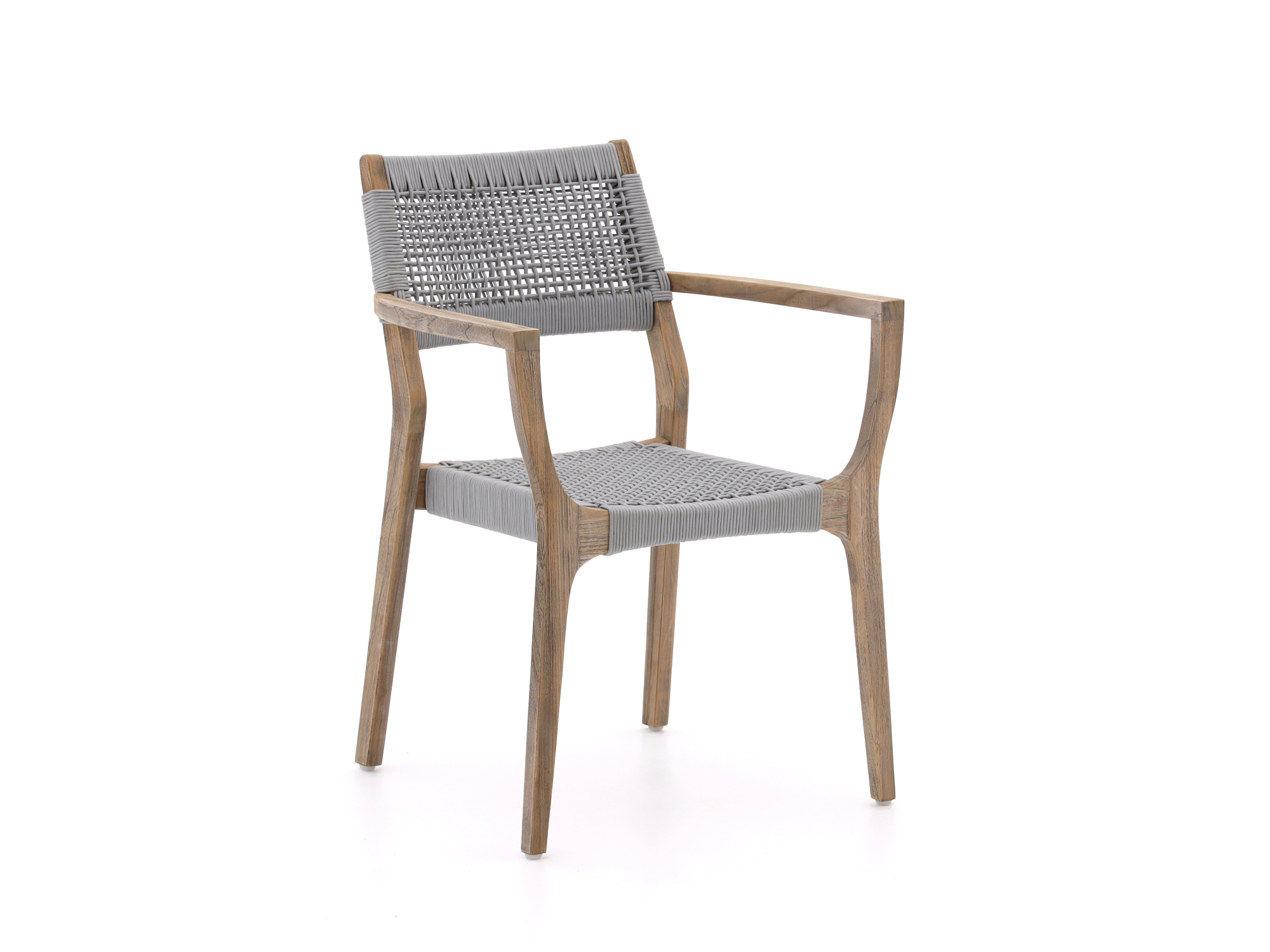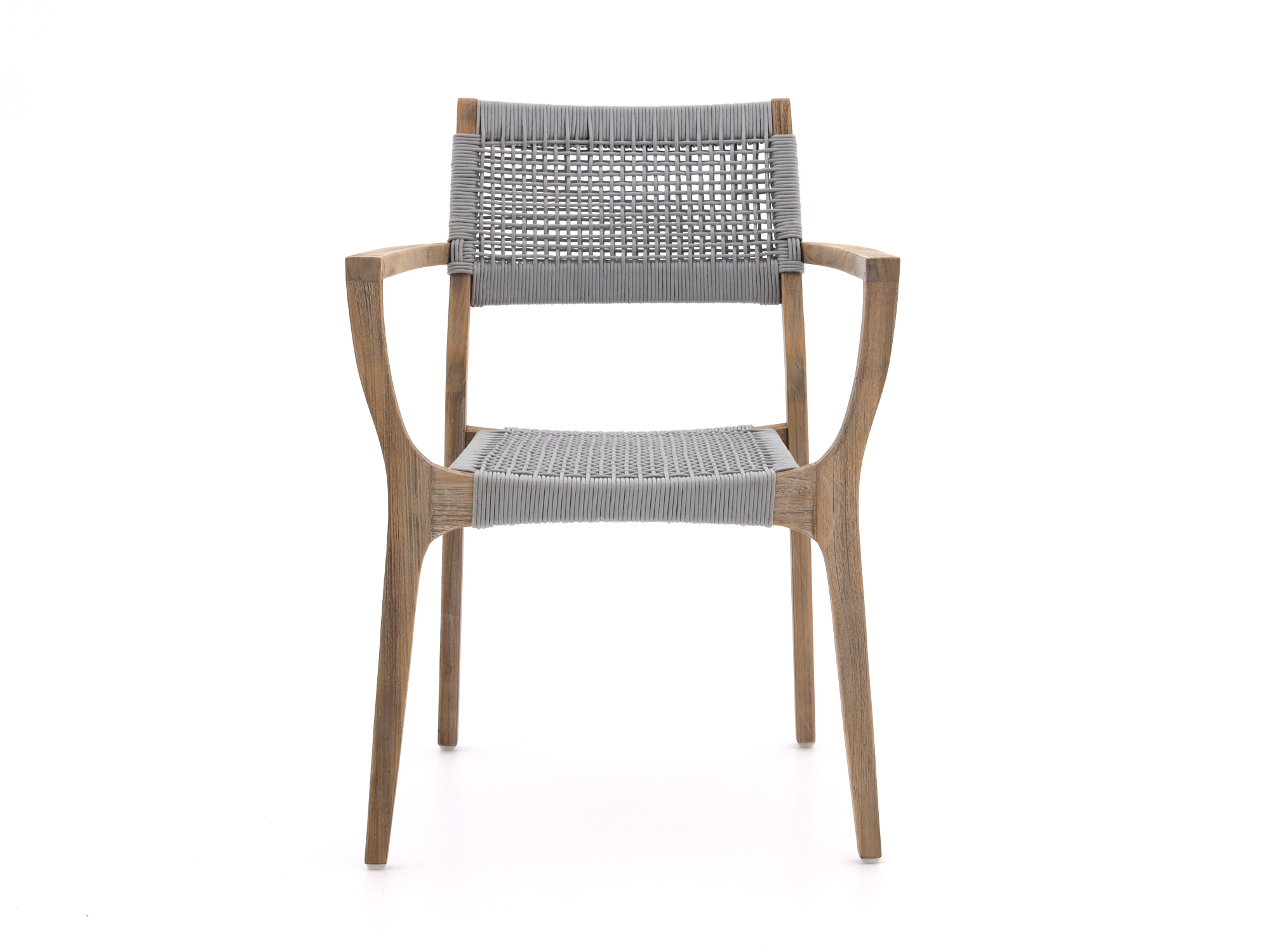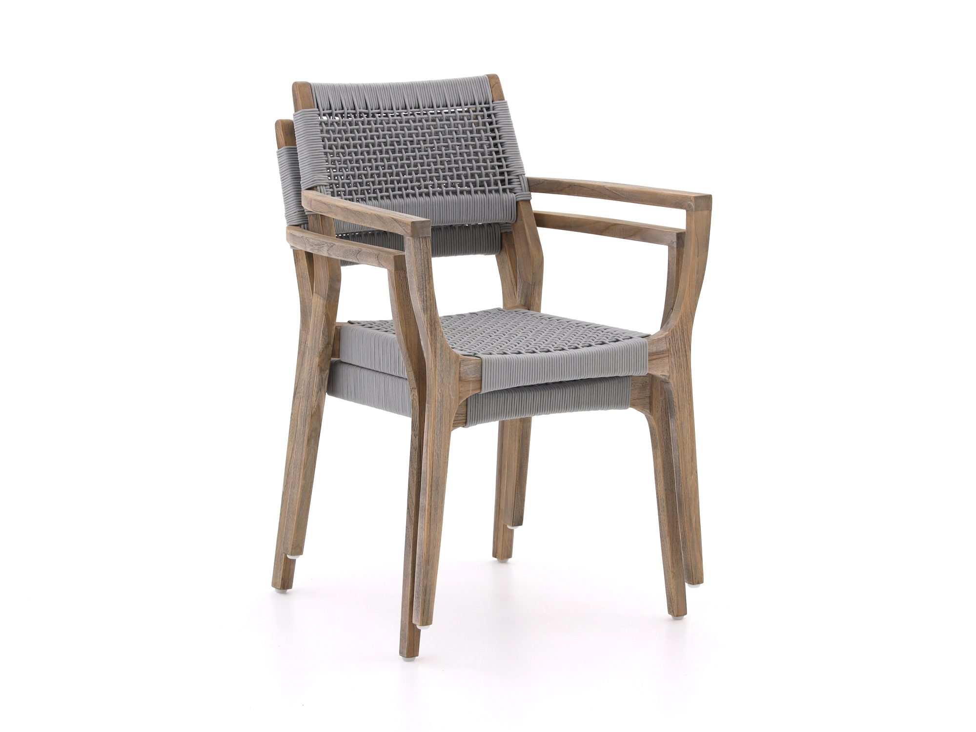 Lichtgrijs rope dat snel droogt: De zittingen van de stoelen zijn gemaakt van stevig geweven rope, dat niet alleen snel droogt, maar ook koel blijft in de zon. Ideaal voor die warme zomerdagen!