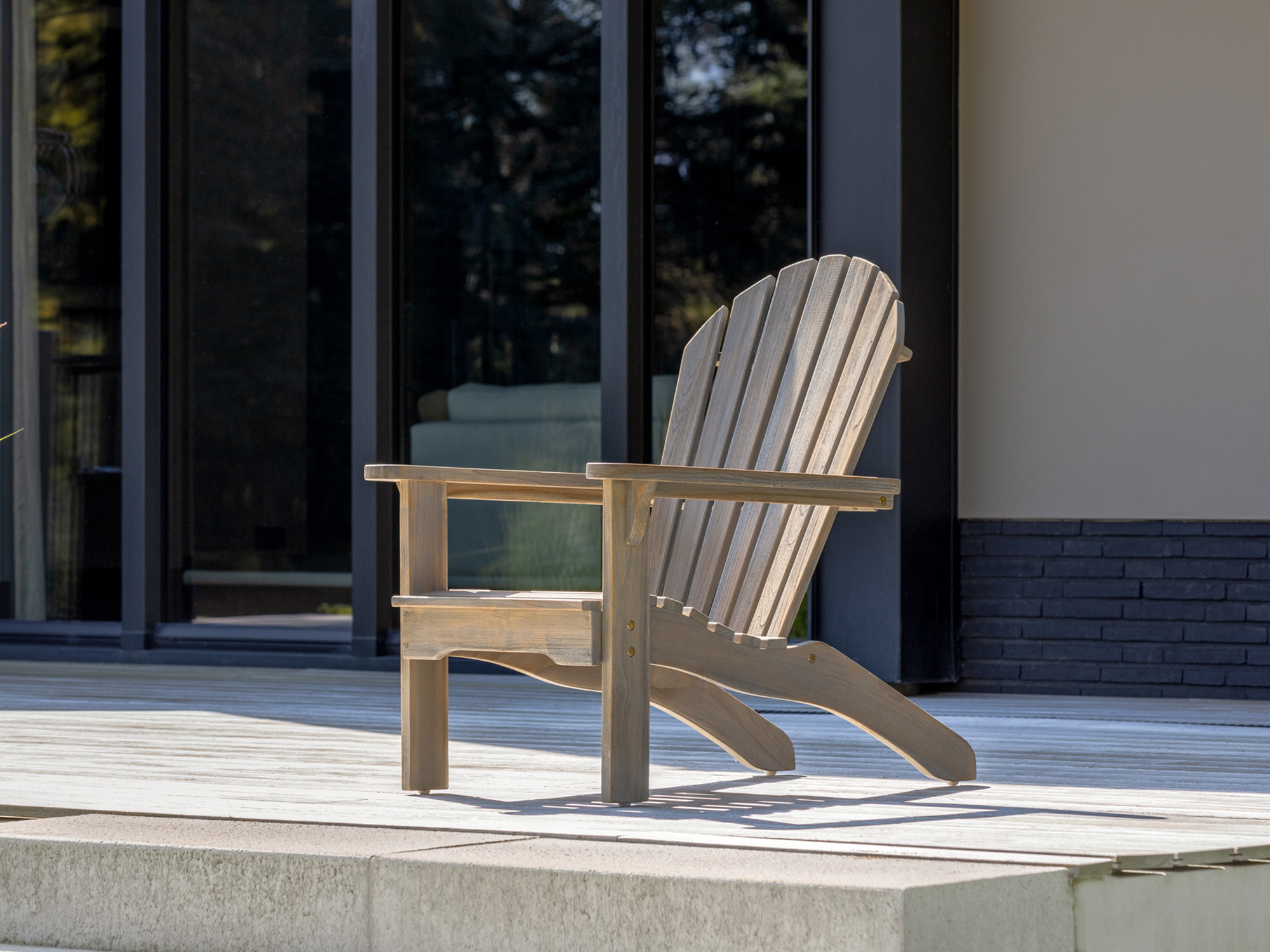 Een Adirondack stoel biedt een unieke uitstraling en comfortabele zit door het brede, lage design