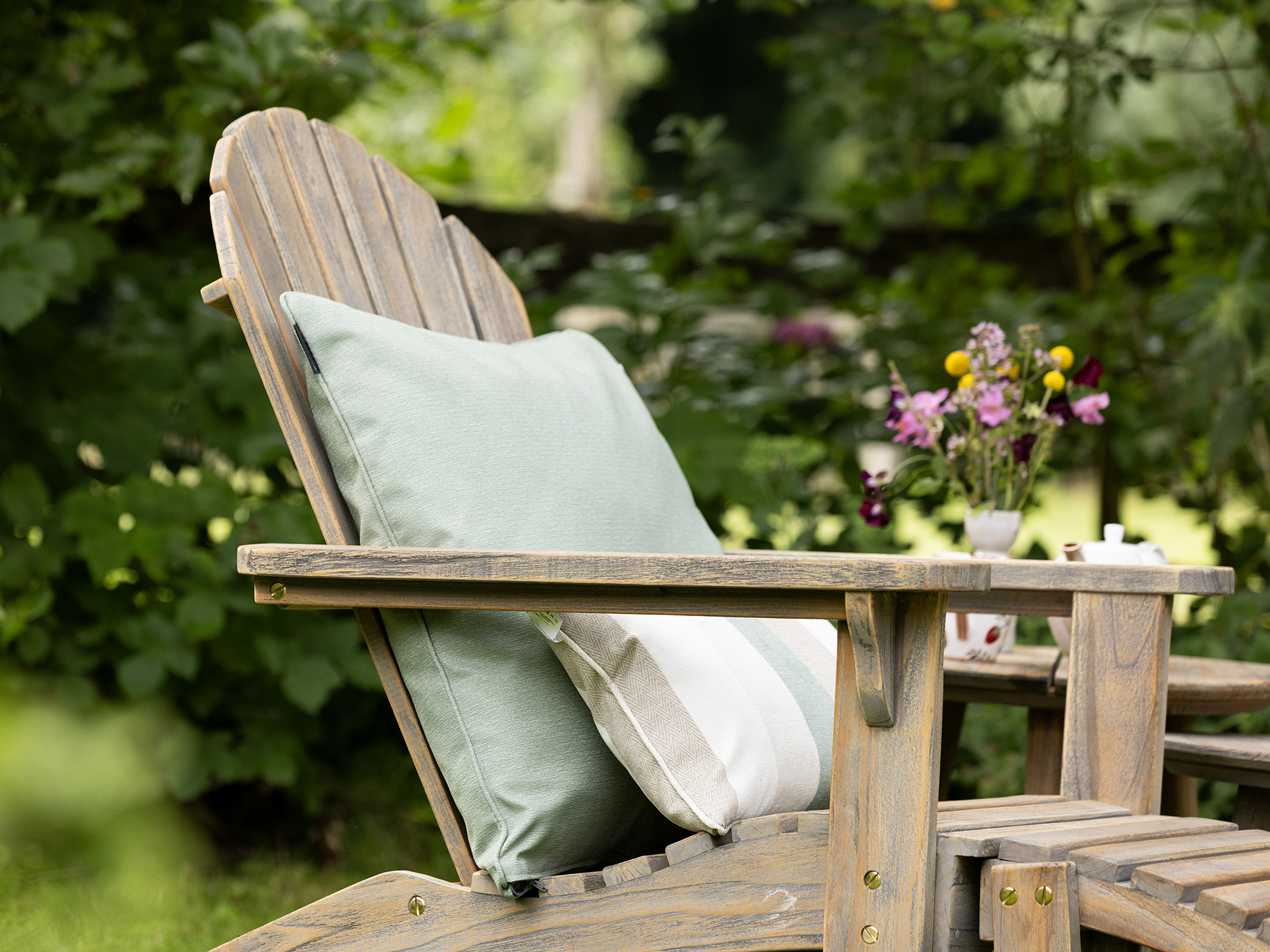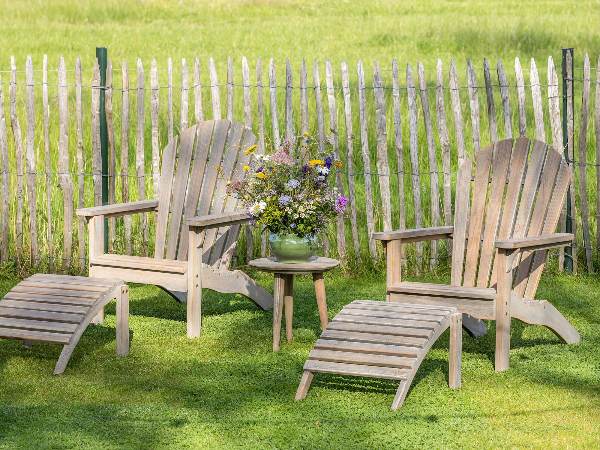 Het teakhout is duurzaam en weerbestendig, ideaal voor buitengebruik