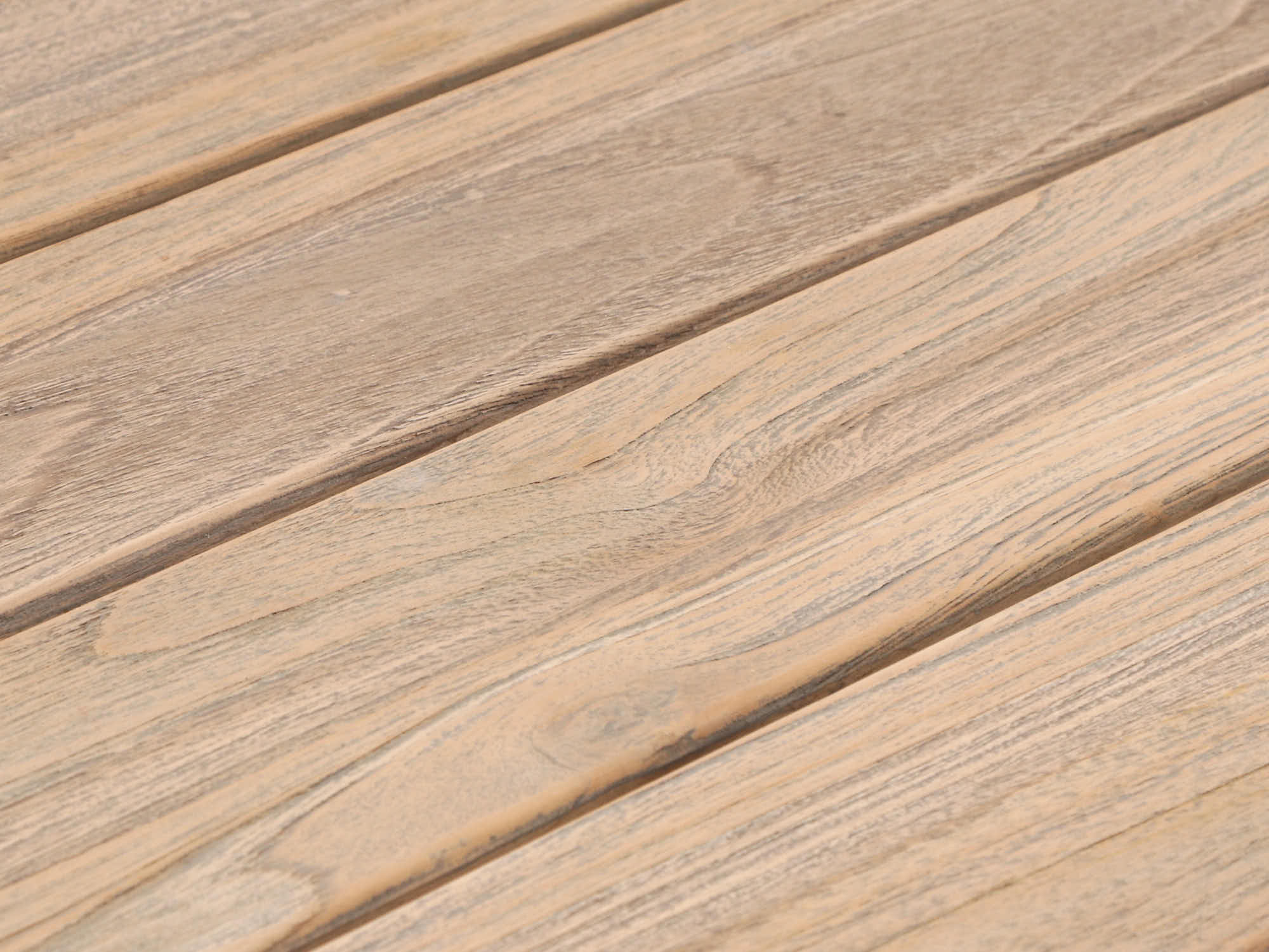 Old Teak Greywash afwerking: De stijlvolle grijze tint geeft een moderne twist aan de klassieke houtlook, waardoor de set in elke tuin een blikvanger is.