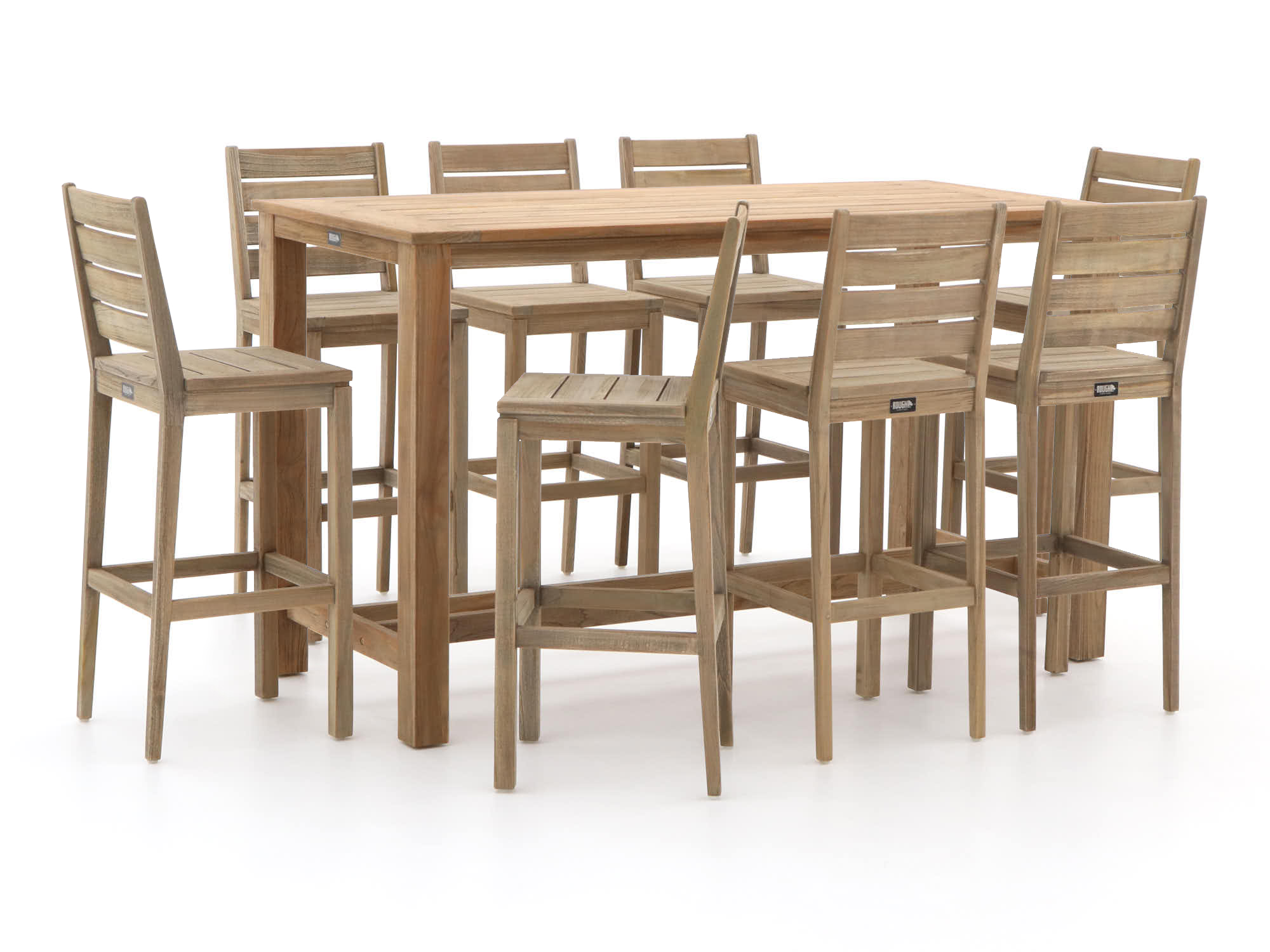 Met de ROUGH-S/ROUGH-X 180cm barset haal je een stukje gezelligheid en stijl naar je tuin. Deze 9-delige set, uitgevoerd in Old Teak Greywash, biedt ruimte voor acht personen om op hoog niveau te genieten van een drankje of een hapje. Het teakhout geeft de set niet alleen een robuuste uitstraling, maar is ook bestand tegen alle weersomstandigheden. Ideaal voor lange zomerdagen en gezellige avonden met vrienden of familie. De hoge zit zorgt voor een speelse twist en maakt het makkelijk om even aan te schuiven voor een praatje. En zeg nou zelf, wie wil er nou niet een beetje boven de rest uitsteken?