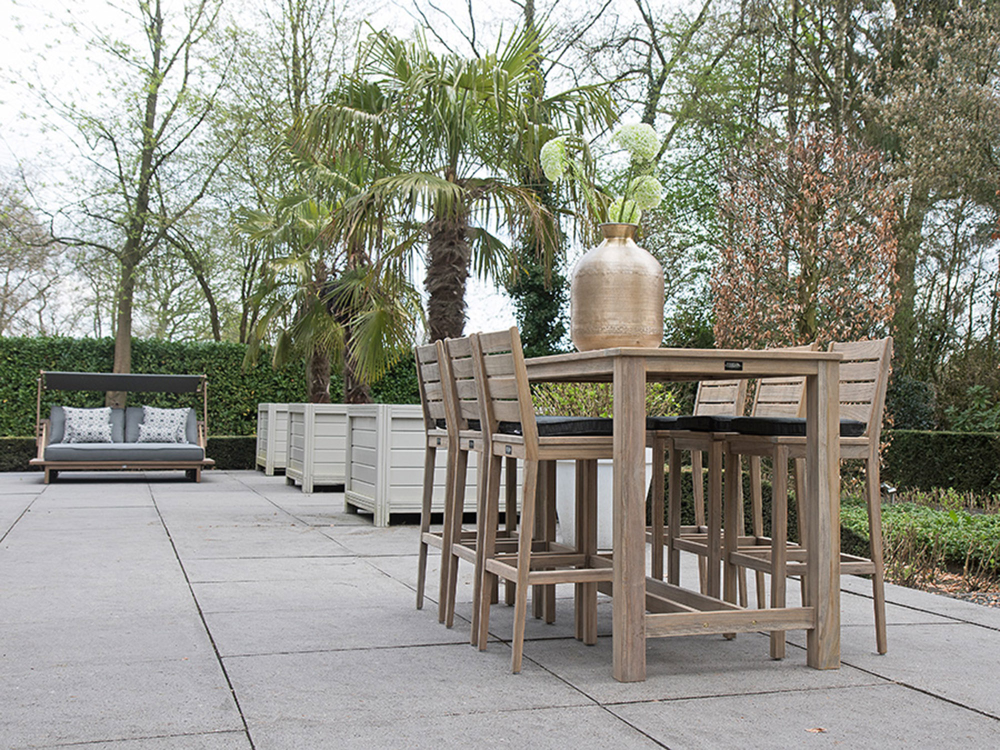 Met de ROUGH-S/ROUGH-X 240cm barset haal je een stukje robuuste elegantie naar je tuin. Deze 9-delige set, uitgevoerd in de warme tinten van Old Teak Greywash, biedt plaats aan acht personen en is een echte blikvanger. Het teakhout is zorgvuldig gedroogd, waardoor het niet alleen bestand is tegen alle weersomstandigheden, maar ook minder snel scheurt of kromtrekt. Ideaal voor lange zomeravonden met vrienden of familie, waarbij je letterlijk op hoog niveau zit. De stevige constructie en nette afwerking zorgen ervoor dat je je geen zorgen hoeft te maken over splinters of wiebelende stoelen. Kortom, een set die zowel praktisch als stijlvol is.