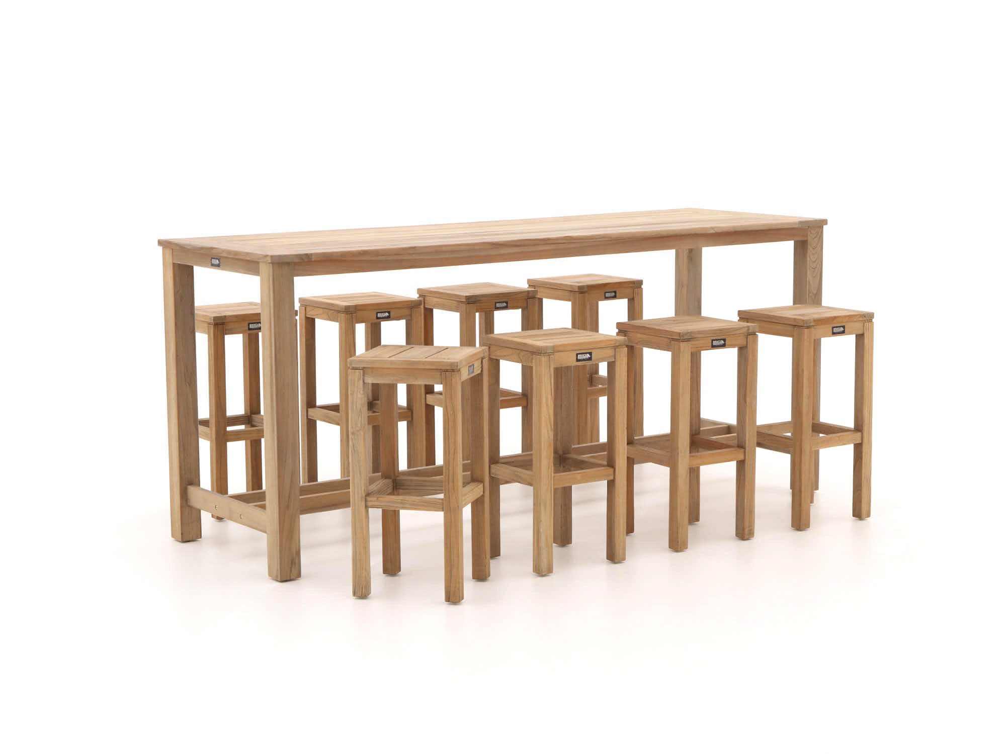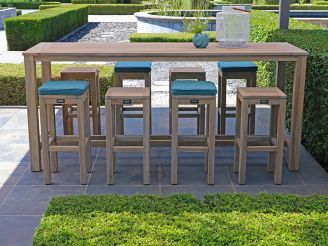 Ben je op zoek naar een stijlvolle en praktische oplossing voor je tuin of terras? Dan is de ROUGH-X 240cm barset echt iets voor jou. Deze set is ideaal voor wie graag buiten geniet van een drankje of een hapje met vrienden en familie. Dankzij de smalle barkrukken neemt deze barset minder ruimte in dan een gewone diningset, en je kunt de krukken er gemakkelijk onder schuiven. Bovendien kun je er ook prima aan staan, wat het een flexibele keuze maakt voor elke gelegenheid. Het gebruik van teakhout geeft de set een robuuste uitstraling en zorgt ervoor dat je jarenlang plezier hebt van deze mooie aanwinst. Tijd om je tuin een upgrade te geven met deze veelzijdige barset!