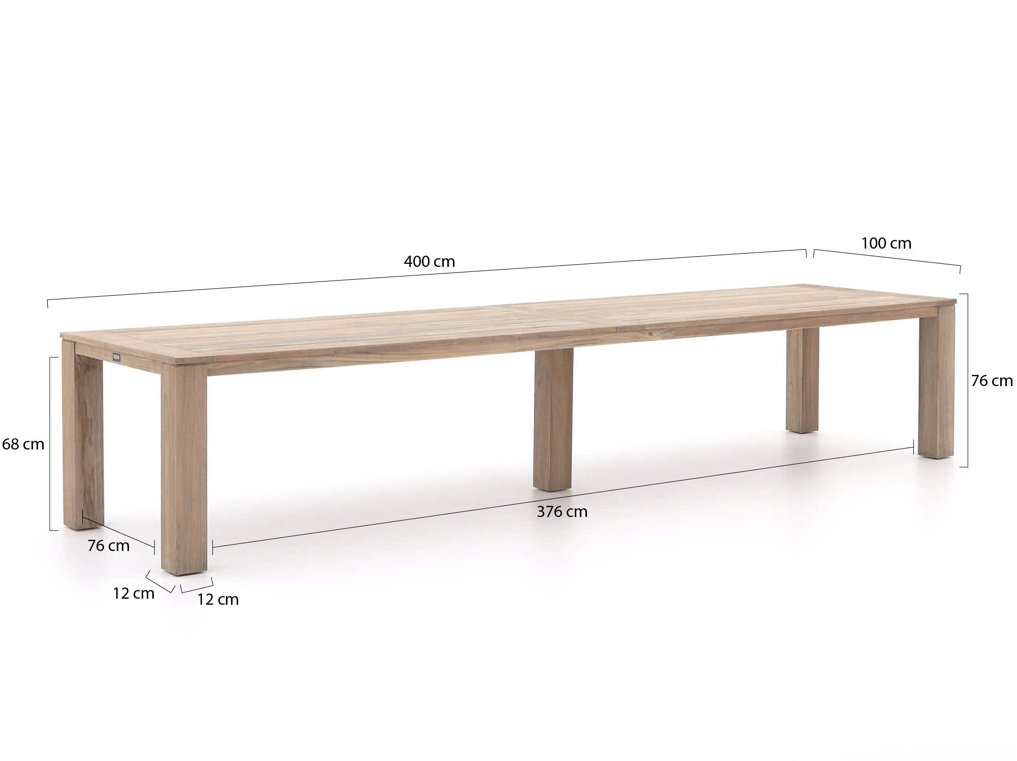 • 400 cm lengte: Je creëert makkelijk plek voor tot 10 eters, handig voor grote gezinnen of als je vaak visite hebt.