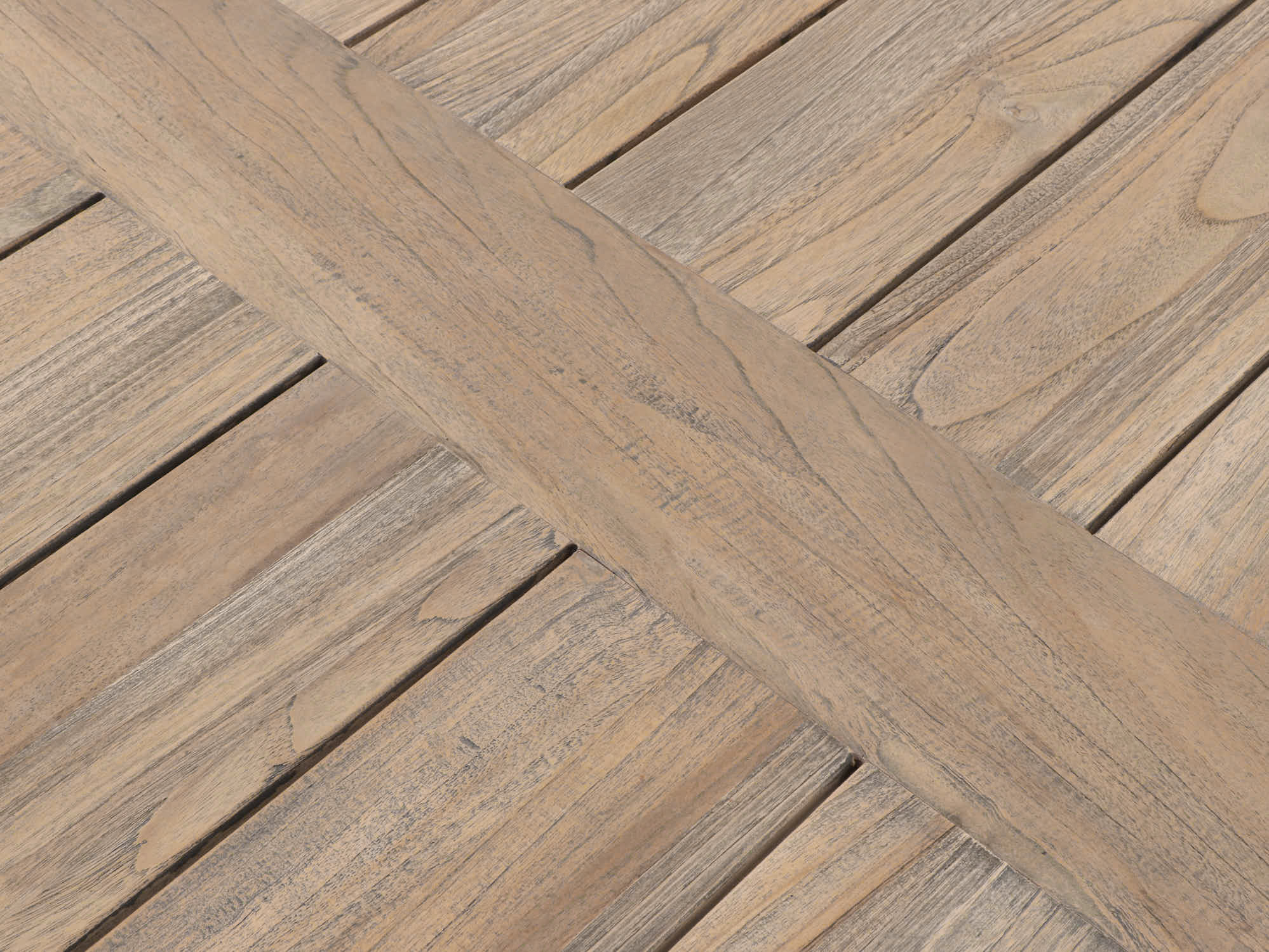 • Old teak greywash kleur: De vergrijsde kleur geeft een stoere, rustige look die je makkelijk combineert met kussens in jouw stijl.