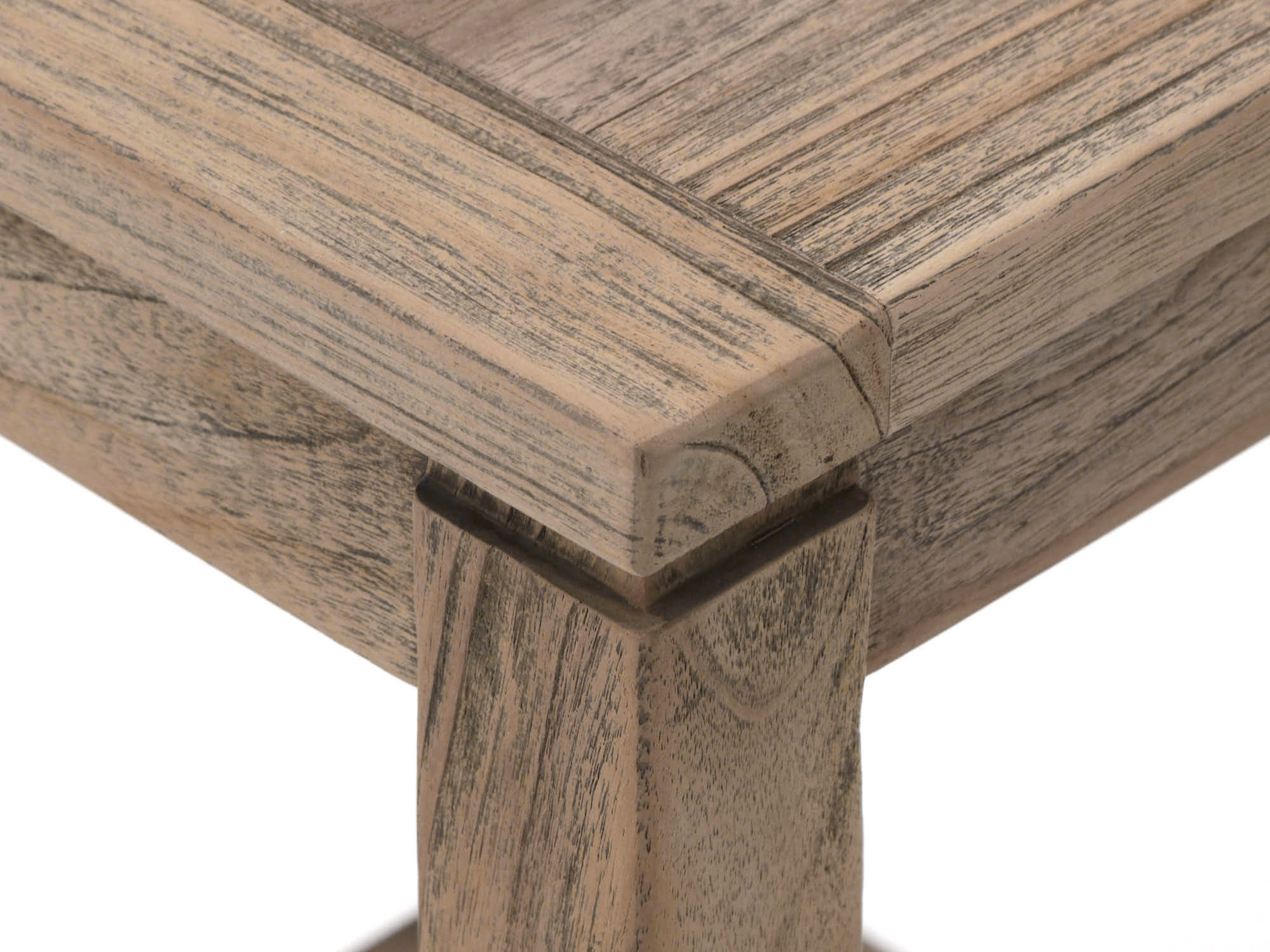 Het teakhout geeft de stoel een natuurlijke en tijdloze uitstraling