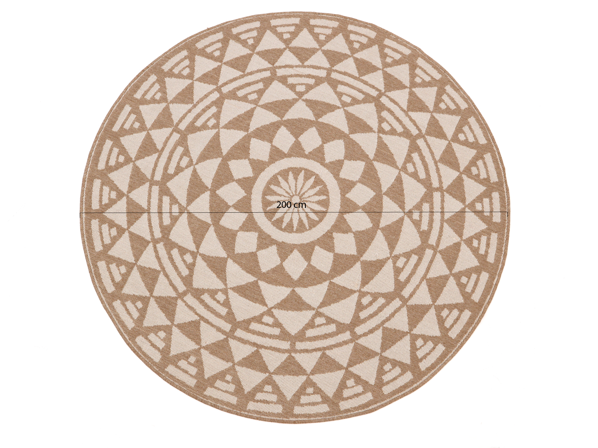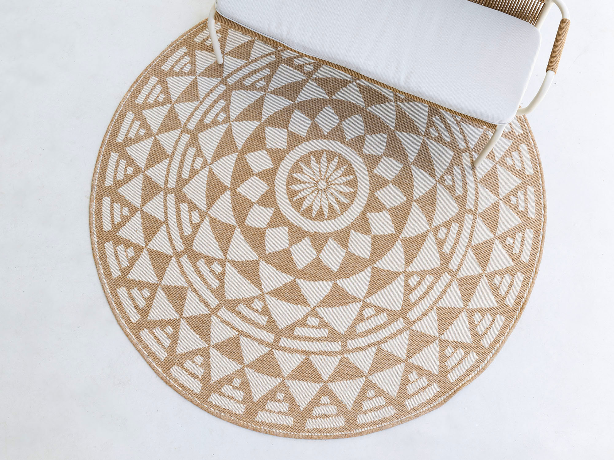 Wil je je tuin, balkon of terras een knusse en stijlvolle uitstraling geven? Met het Santa Maria buitenkleed ø 200cm in de kleur aztec naturel/wit creëer je in een handomdraai een gezellige sfeer. Dit kleed is niet alleen een mooie toevoeging aan je buitenruimte, maar ook ontzettend praktisch. Perfect voor onder een loungeset, eettafel of gewoon als blikvanger op je terras!