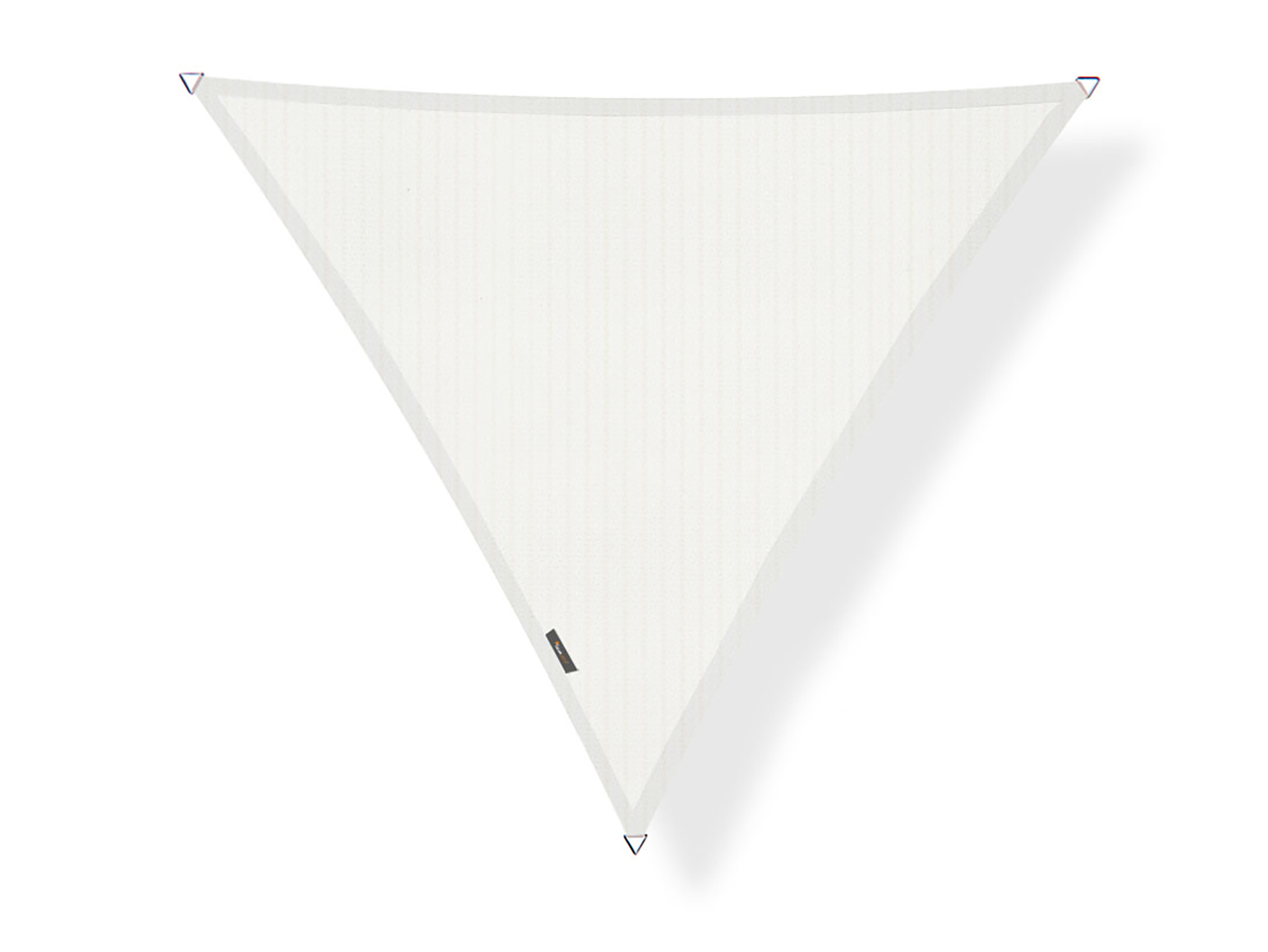 De zijkanten van dit schaduwdoek zijn licht gebogen. Dat zie je bijna niet, maar het zorgt ervoor dat je het doek mooi strak kunt spannen zonder slappe hoeken. Aan de punten vind je stevige RVS ogen voor de bevestiging. Houd bij het plaatsen rekening met een spanningsmarge van minimaal 25 cm tussen de bevestigingspunten en de hoek van het doek. Die ruimte heb je nodig voor haken, spanmoeren of touwen om het doek echt strak te krijgen. Bevestigingsmateriaal wordt niet standaard meegeleverd, zodat je zelf de opties kunt kiezen die passen bij jouw muur, paal of pergola.