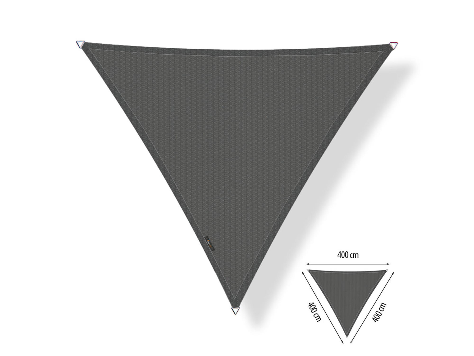 Door de driehoekige vorm van 400x400x400 cm speel je makkelijk met de positie en hoogte van het doek. Zo bepaal je zelf waar de schaduw valt, bijvoorbeeld langs je gevel, tussen twee muren of aan een pergola. Houd bij het ophangen rekening met een spanningsmarge van minimaal 25 cm rondom, zodat er ruimte is voor de bevestigingsmaterialen en je het doek strak kunt spannen. De zijkanten van het doek zijn bewust licht gebogen. Dat zie je bijna niet, maar zorgt wel voor een strakke, gelijkmatige spanning zonder slobberen.
