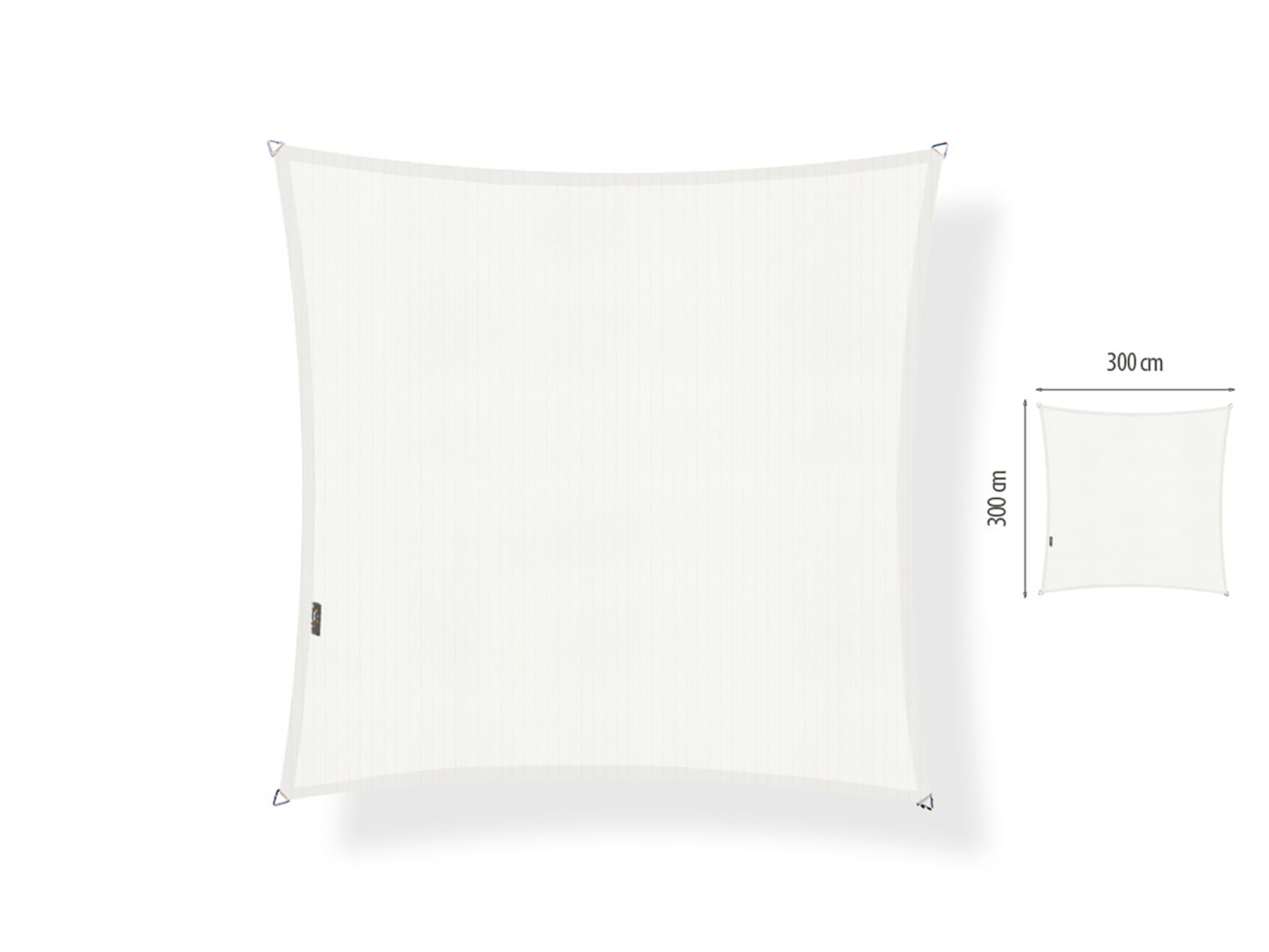 Met 300x300 cm maak je een flinke schaduwzone, bijvoorbeeld boven een balkon op het zuiden of een terras waar de zon de hele middag op staat. Houd er rekening mee dat de randen van het doek licht gebogen zijn. Deze curves zorgen ervoor dat je het doek mooi strak kunt spannen en dat de spanning gelijkmatig verdeeld wordt. Door de vorm valt de effectieve schaduw iets binnen de 300x300 cm, vooral langs de zijkanten, maar in het midden heb je een ruime beschutte plek.