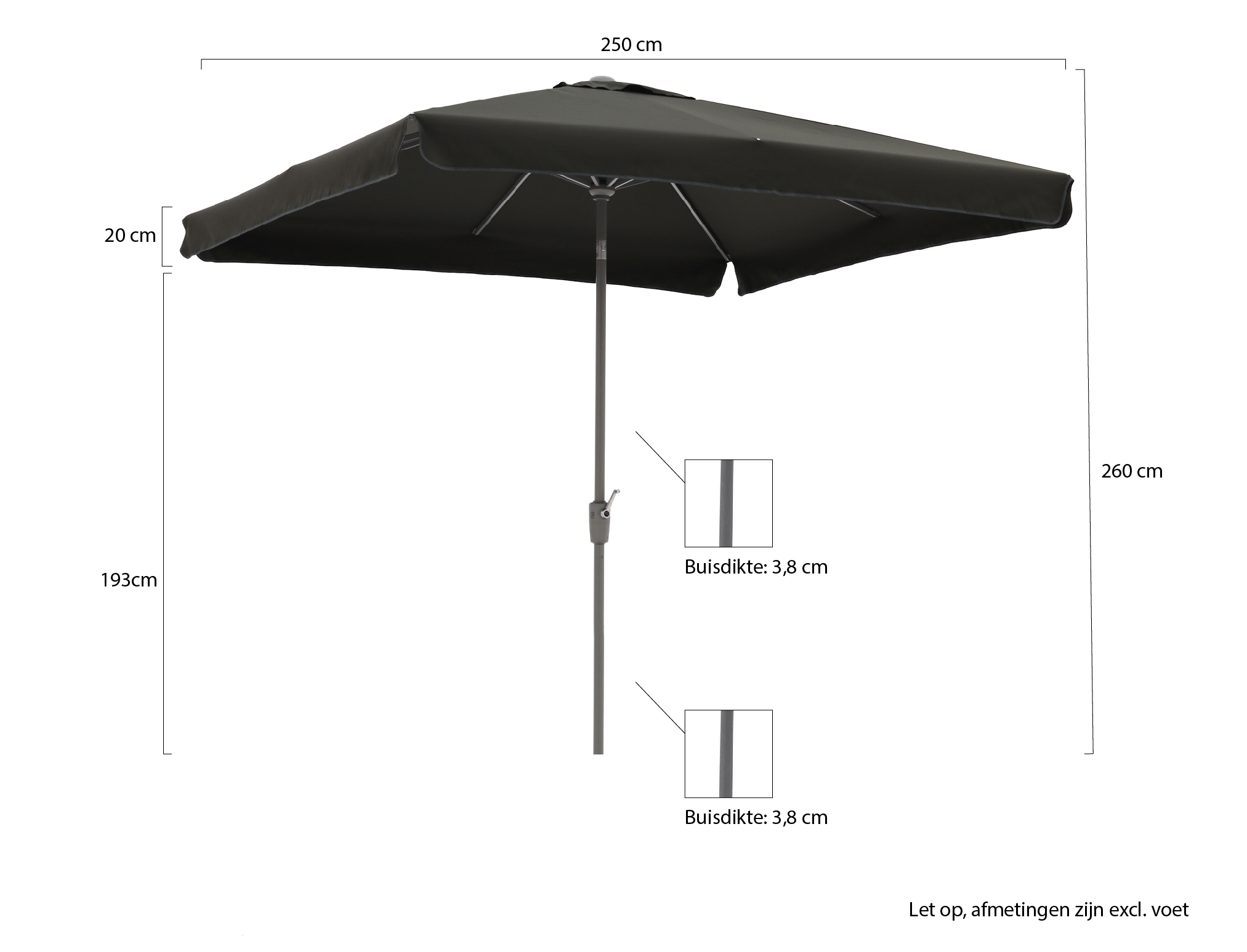 • Met de draaihendel is deze parasol erg eenvoudig open en dicht te draaien