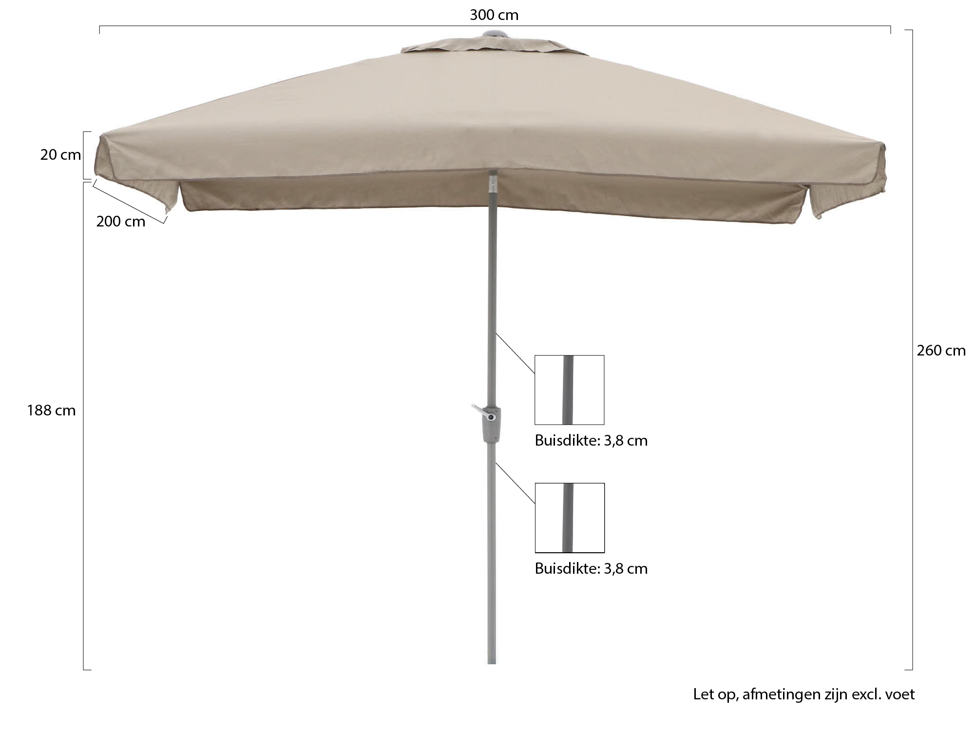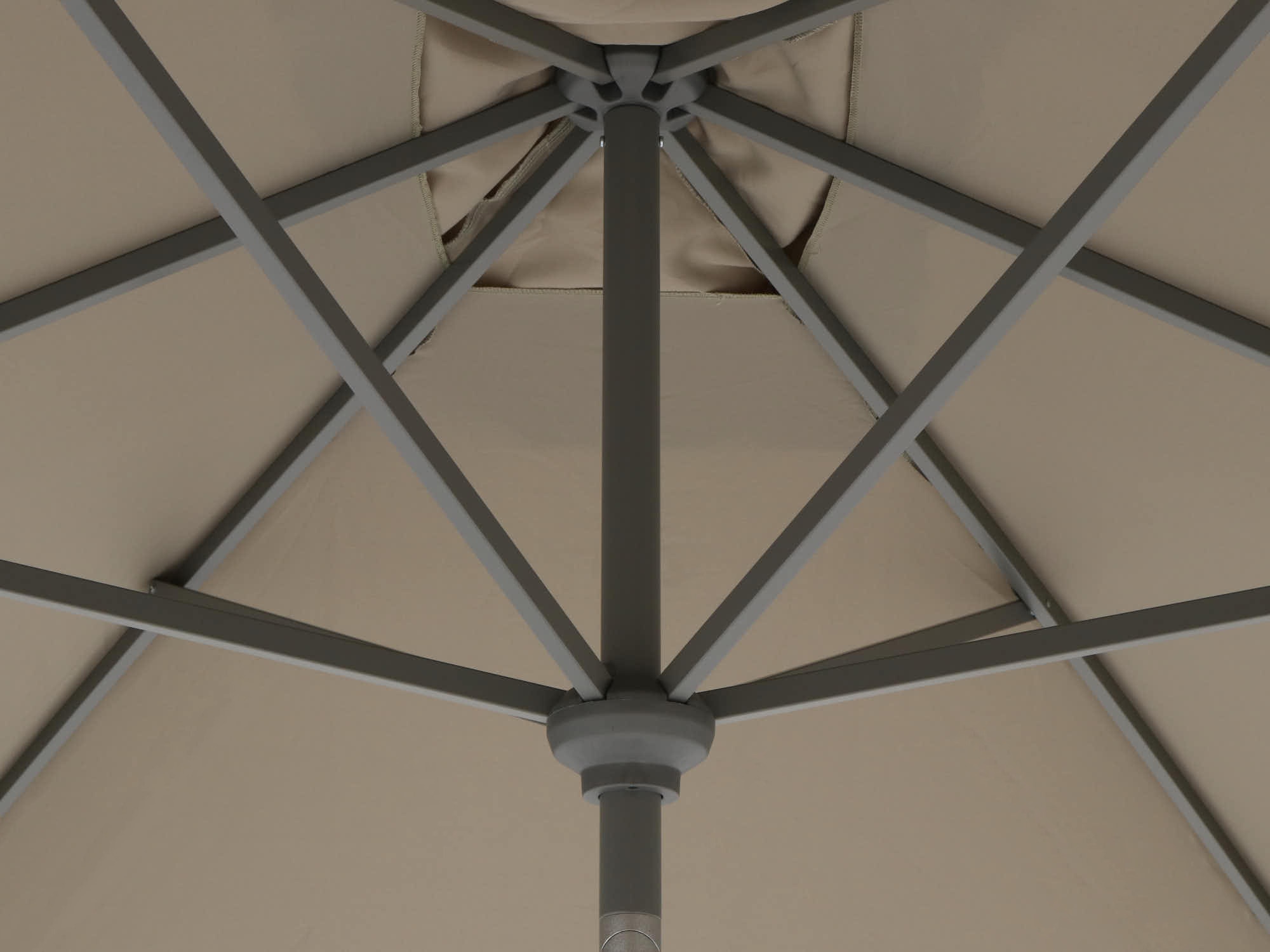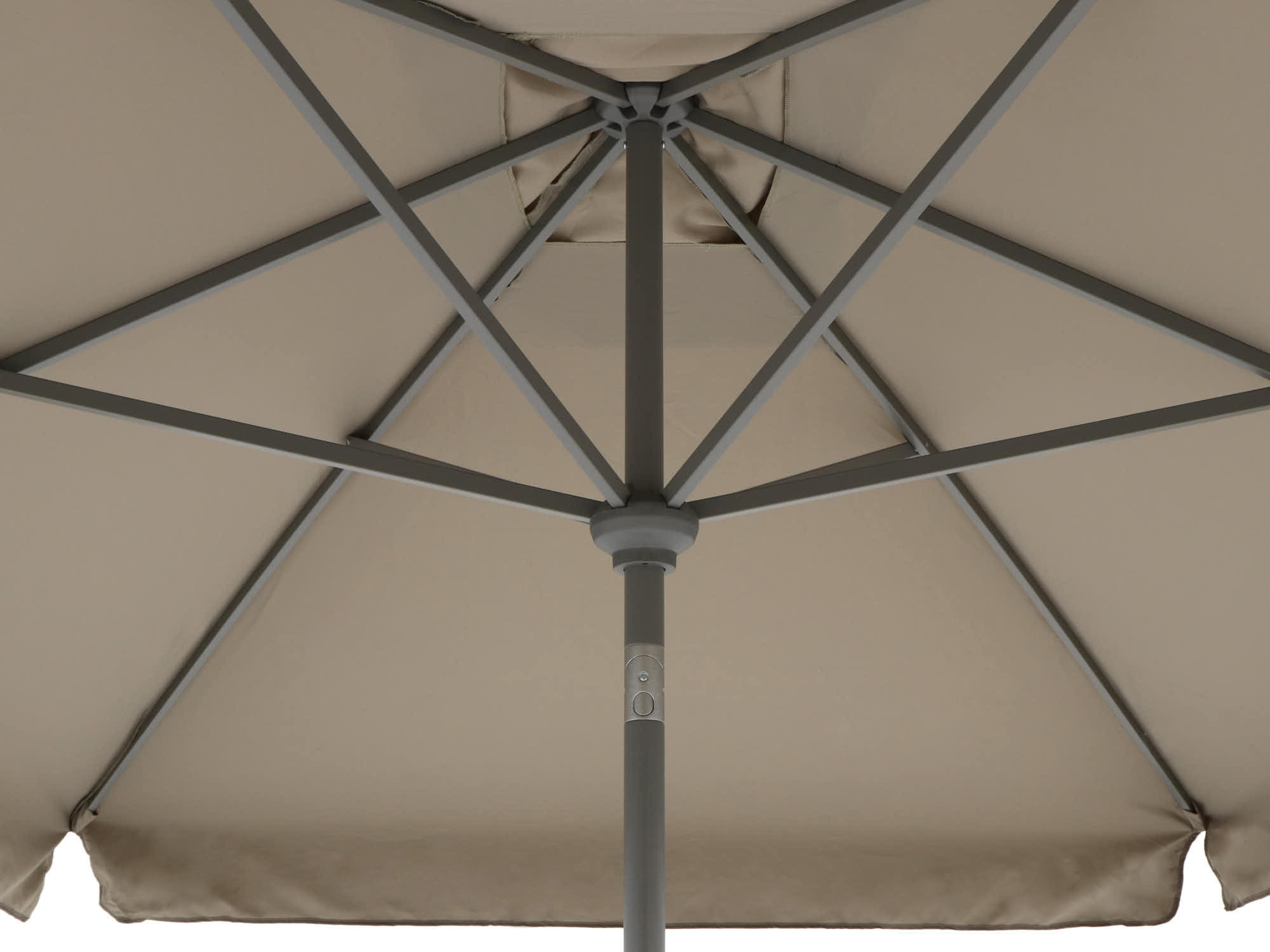 Deze parasol is direct klaar voor gebruik. Je hoeft alleen de mast in de voet te plaatsen en goed vast te zetten. Afhankelijk van het model kan het nodig zijn om de vul- of kruisvoet extra te verzwaren, zodat de parasol stevig blijft staan, ook bij wind. Met de duidelijke handleiding zorg je ervoor dat alles veilig en stabiel staat. Zo kun je direct genieten van fijne schaduw in je tuin!