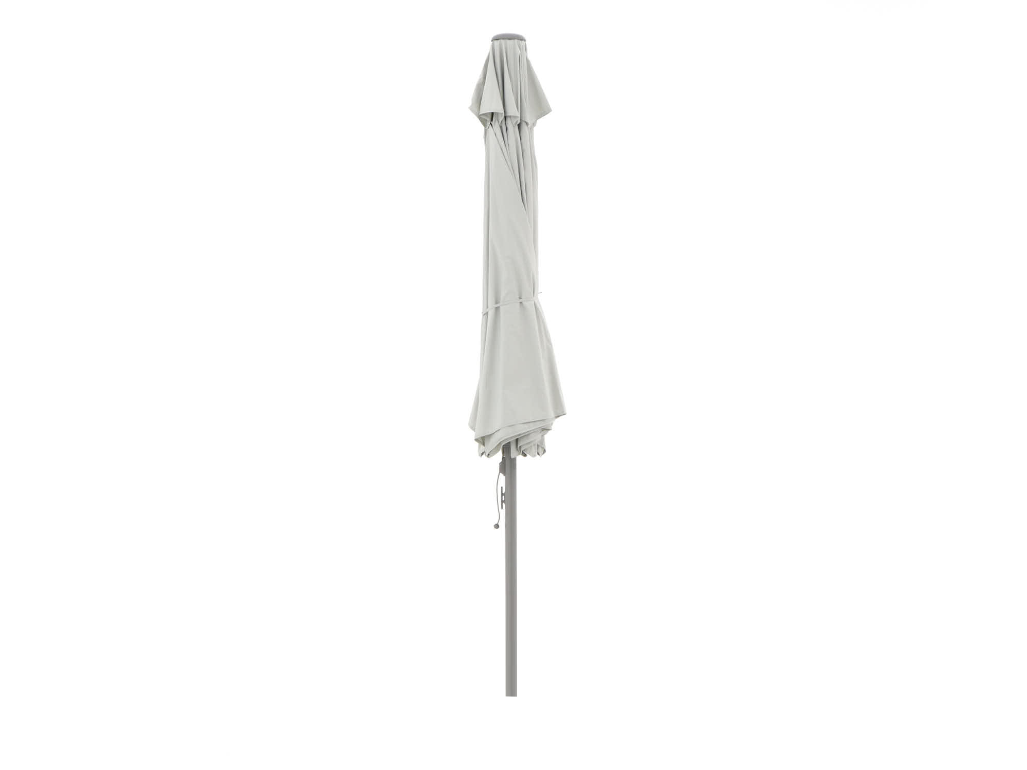 Draai de parasol dicht bij harde wind om schade te voorkomen