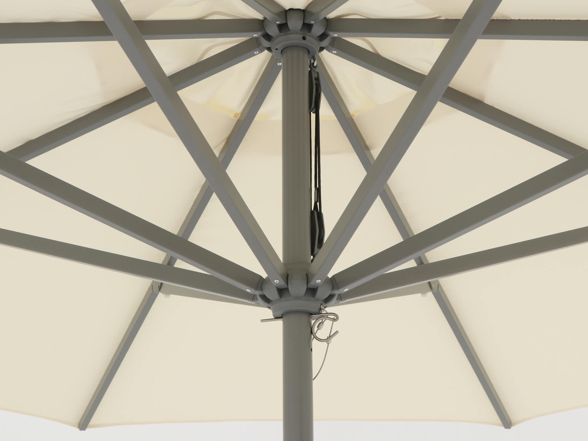 Katrol openingsmechanisme: Met het katrolsysteem open en sluit je de parasol moeiteloos, zodat je snel kunt genieten van de schaduw.