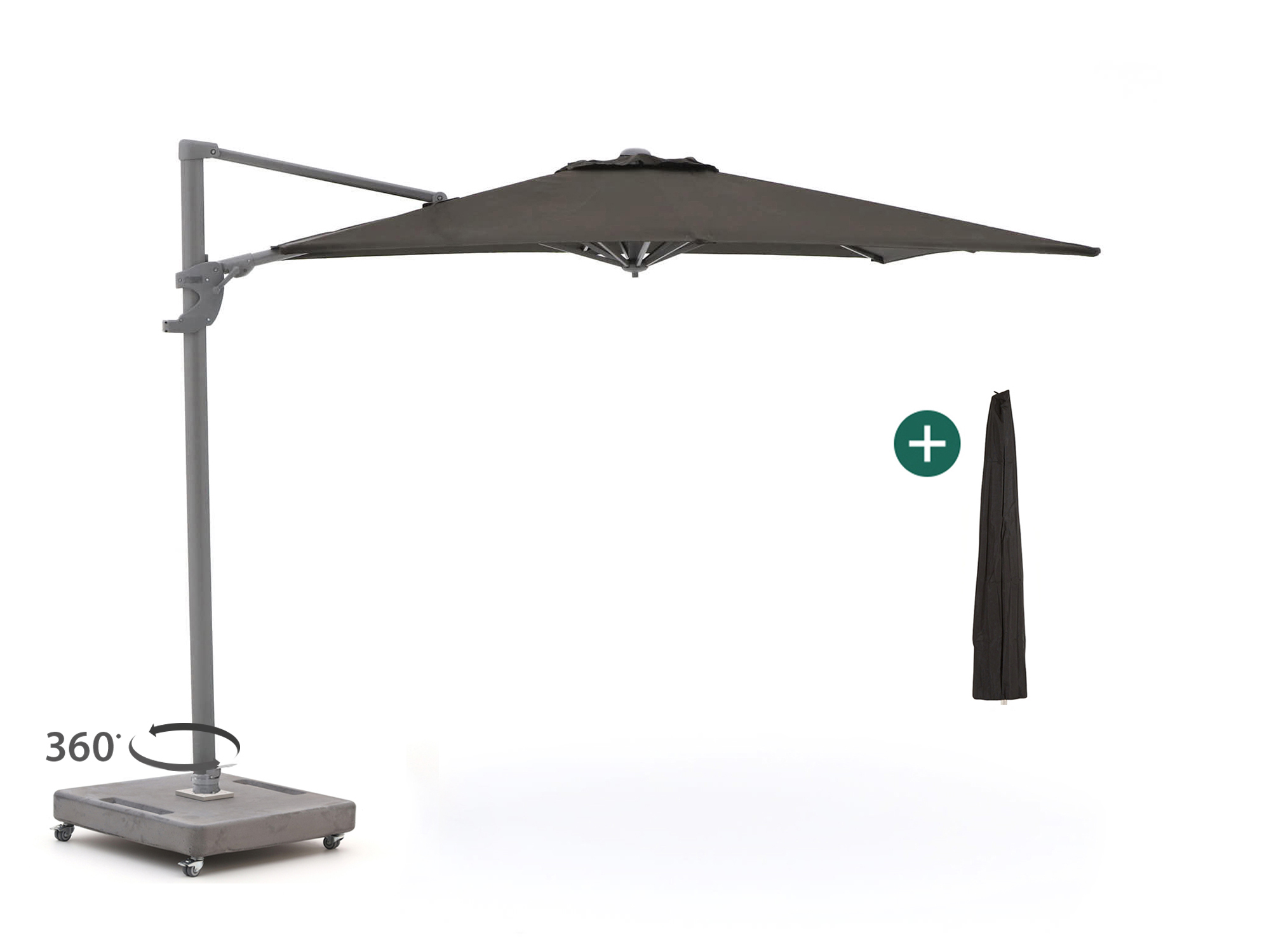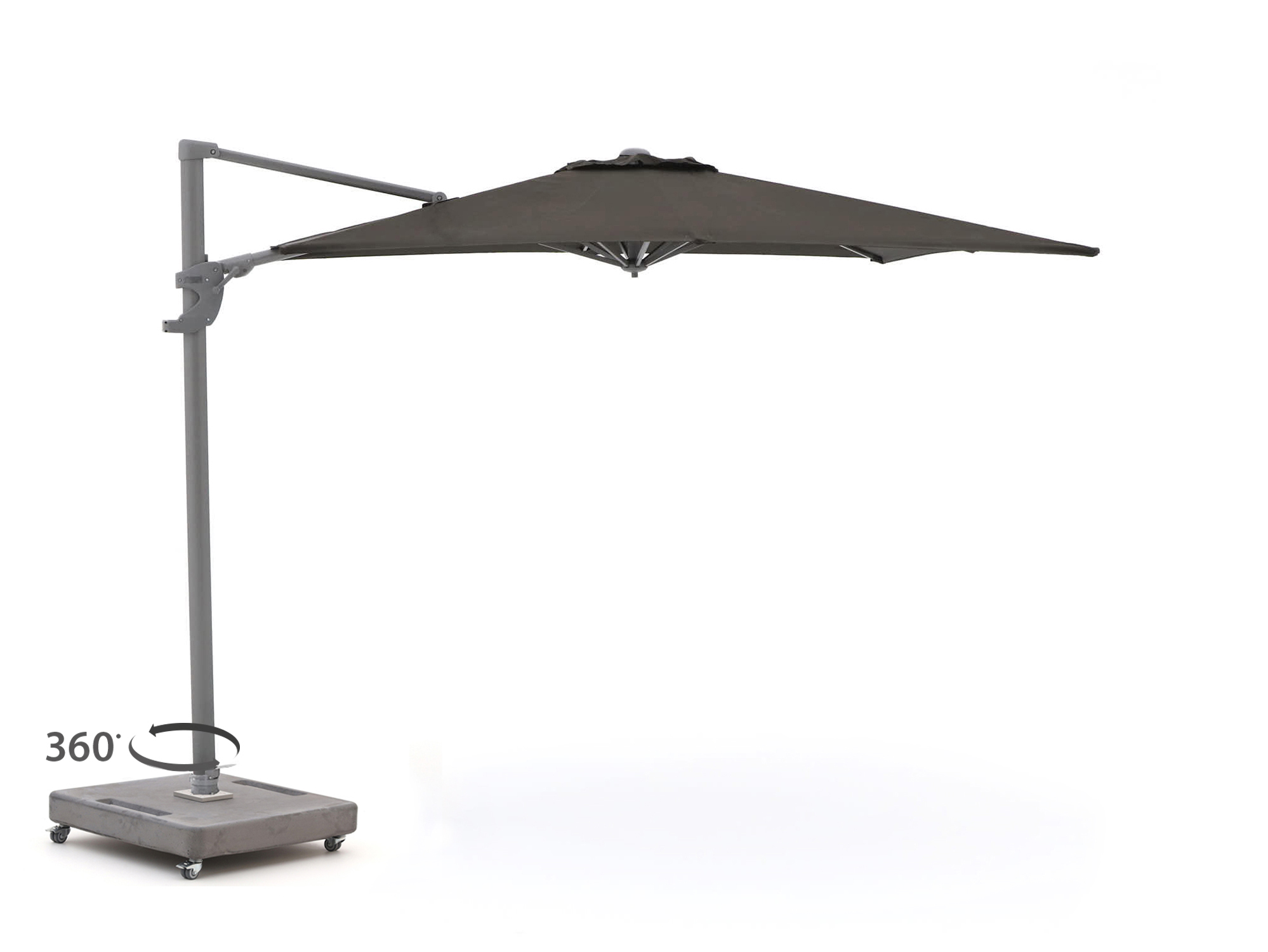 Je kunt de parasol 360 graden draaien, zo heb je altijd schaduw op de juiste plek