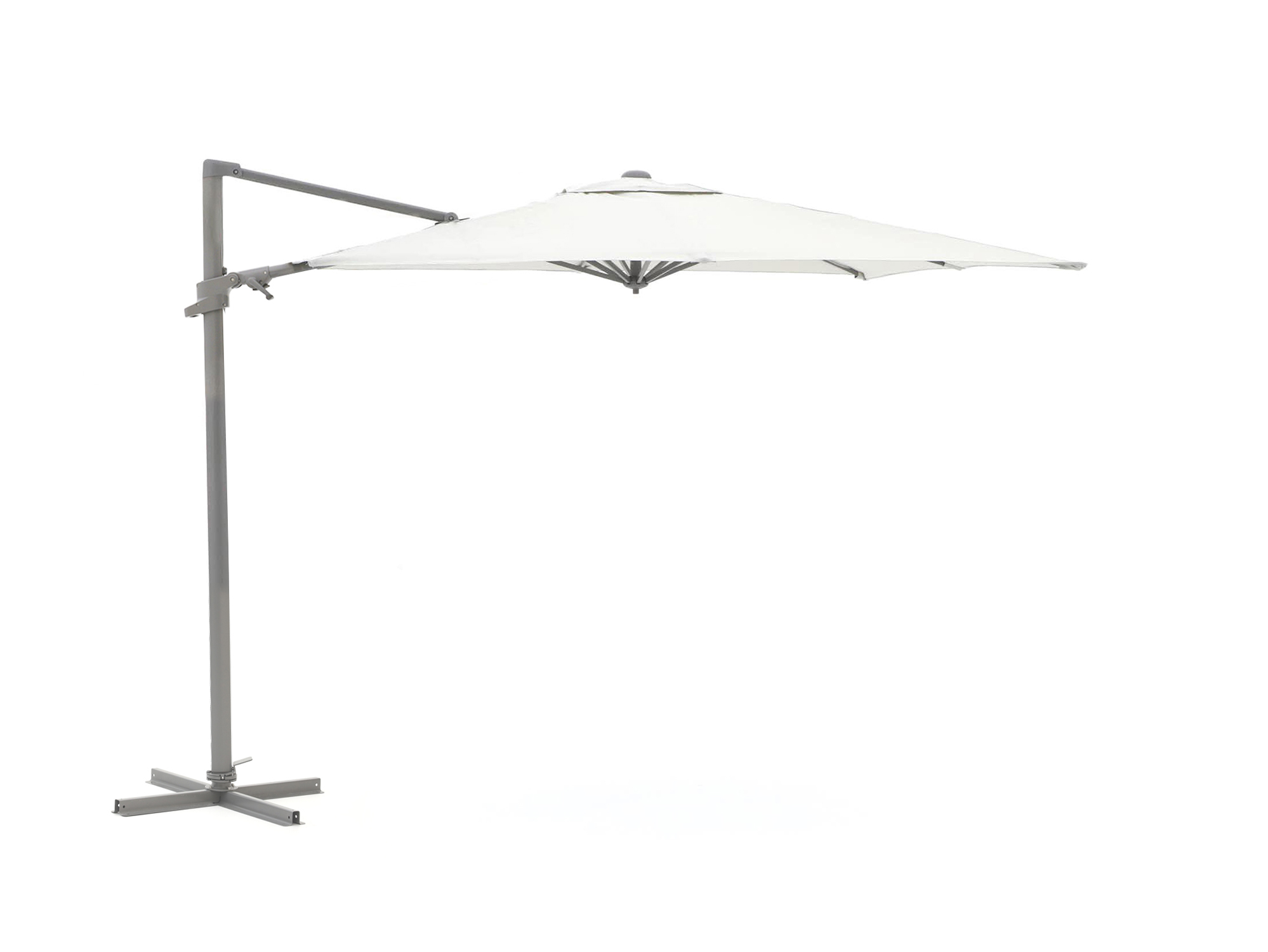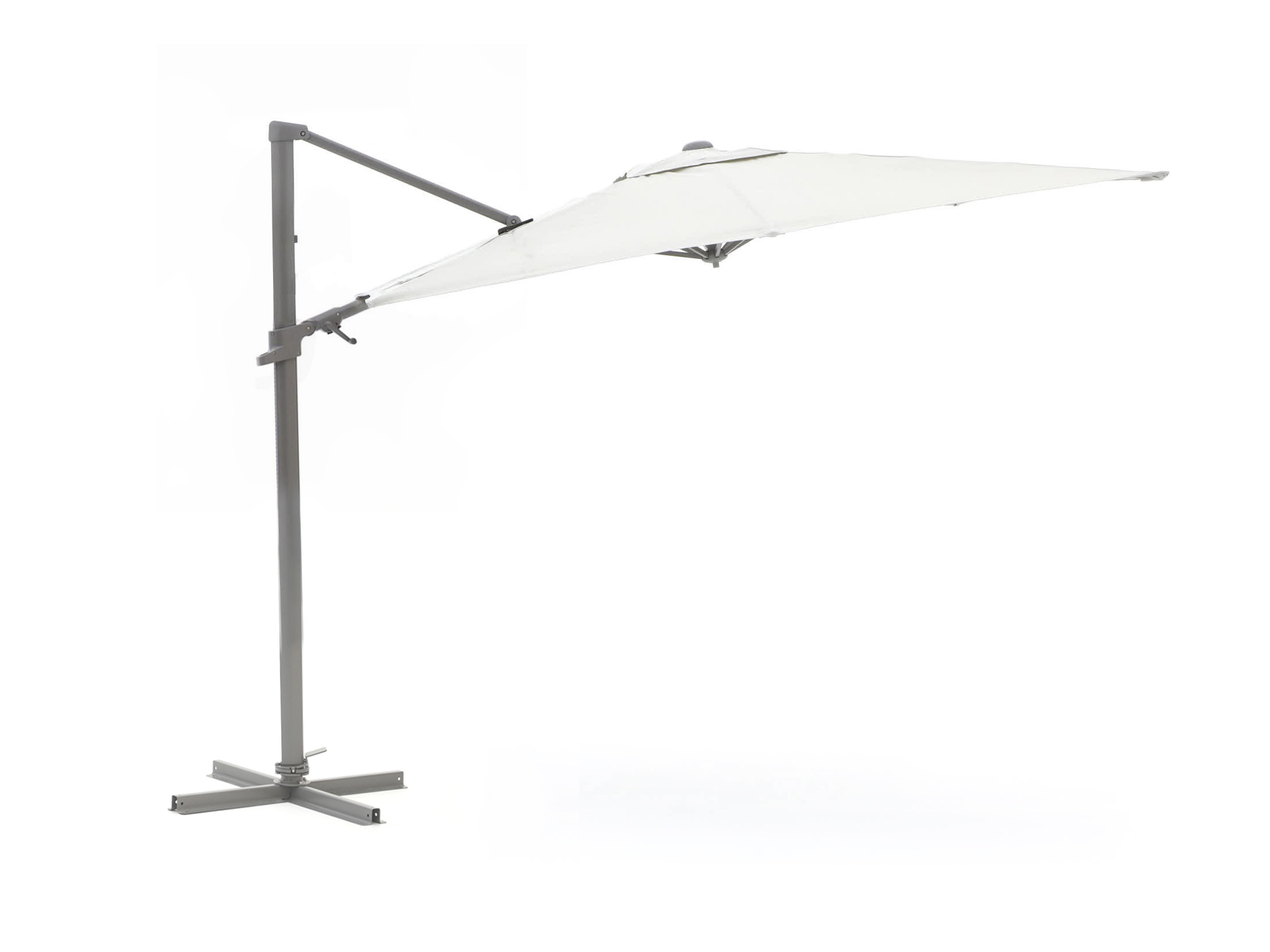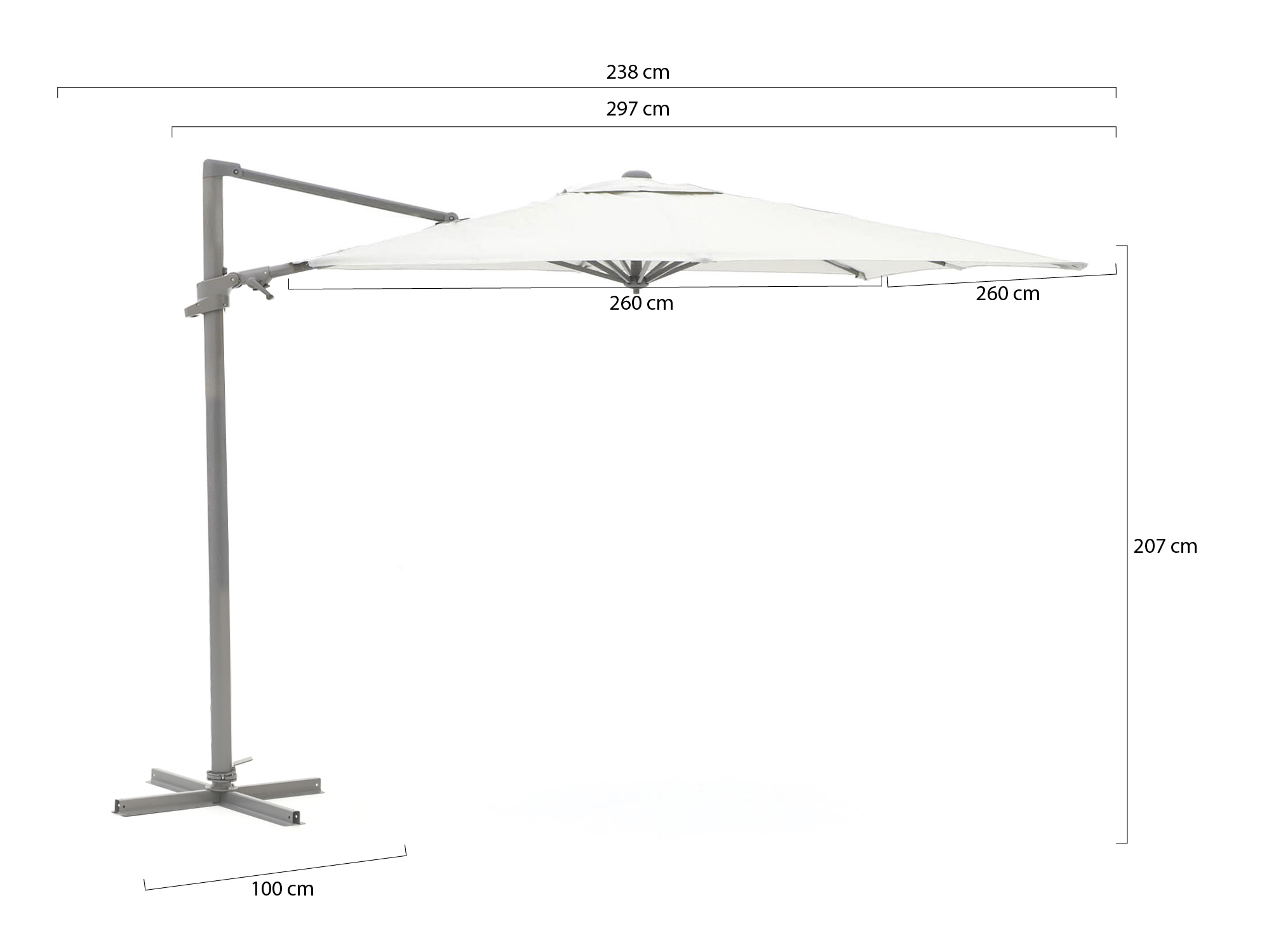 Dankzij de zwevende constructie zit er niks in de weg. Je hebt alle ruimte onder het doek, ideaal bij een eettafel of loungeset.