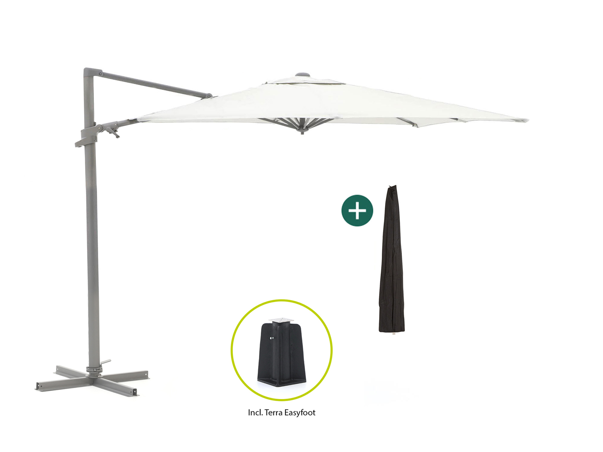 Deze parasol is direct klaar voor gebruik. Je hoeft alleen de mast in de voet te plaatsen en goed vast te zetten. Afhankelijk van het model kan het nodig zijn om de vul- of kruisvoet extra te verzwaren, zodat de parasol stevig blijft staan, ook bij wind. Met de duidelijke handleiding zorg je ervoor dat alles veilig en stabiel staat. Zo kun je direct genieten van fijne schaduw in je tuin!