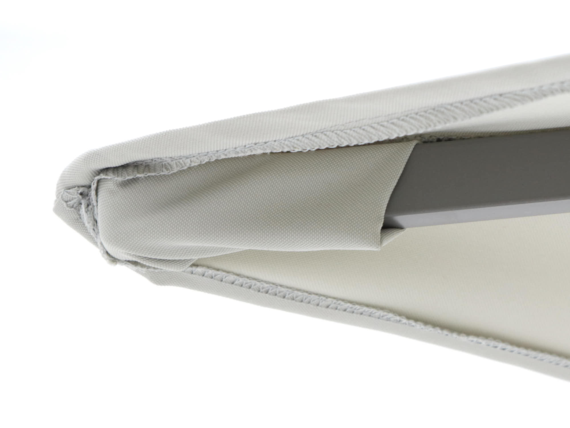 Detailfoto van de kwaliteit van een beige parasoldoek