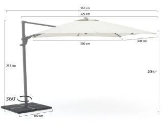 Shadowline Francisco zweefparasol 300x300cm