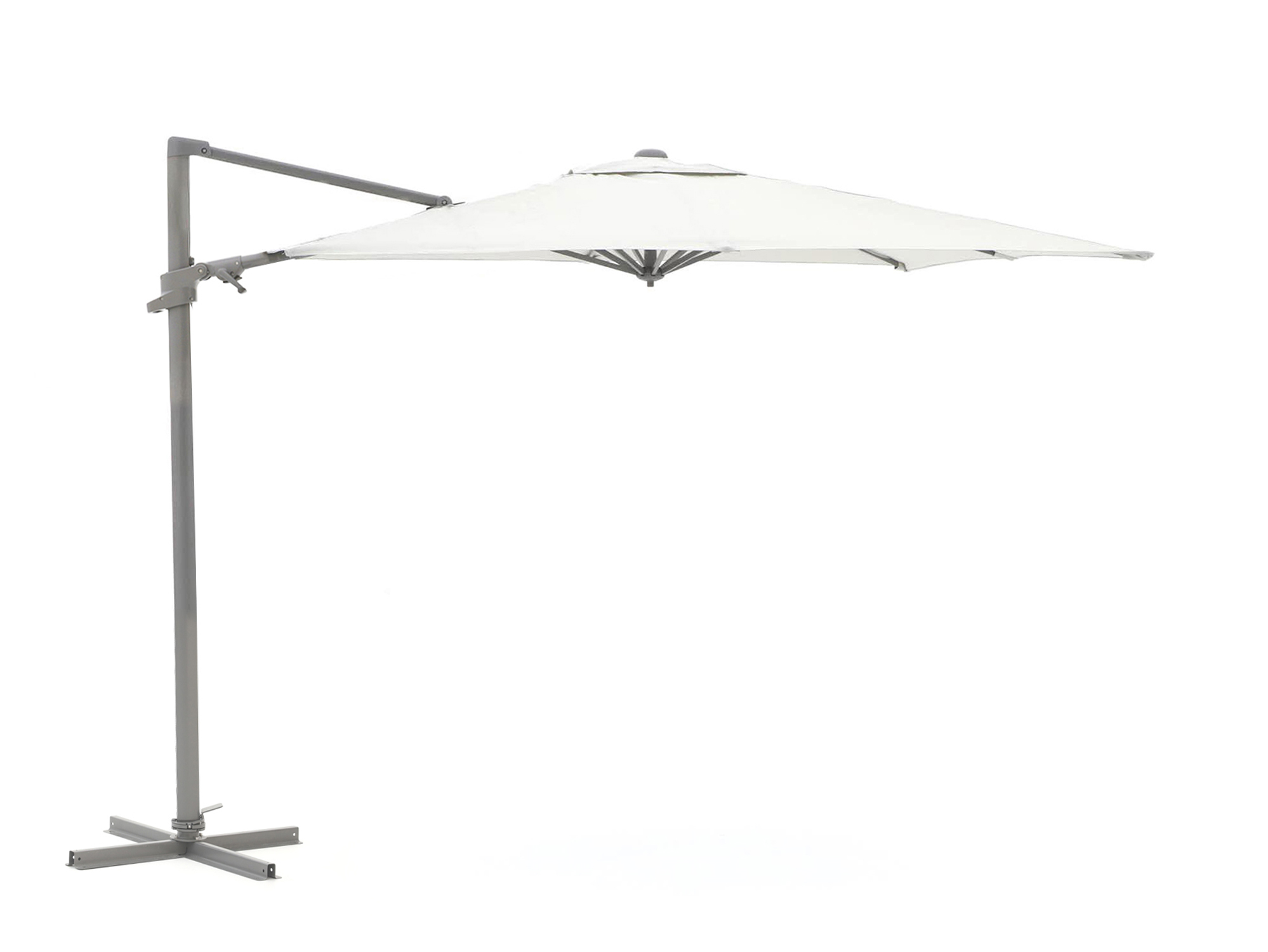 Dankzij de zwevende constructie zit er niks in de weg. Je hebt alle ruimte onder het doek, ideaal bij een eettafel of loungeset.