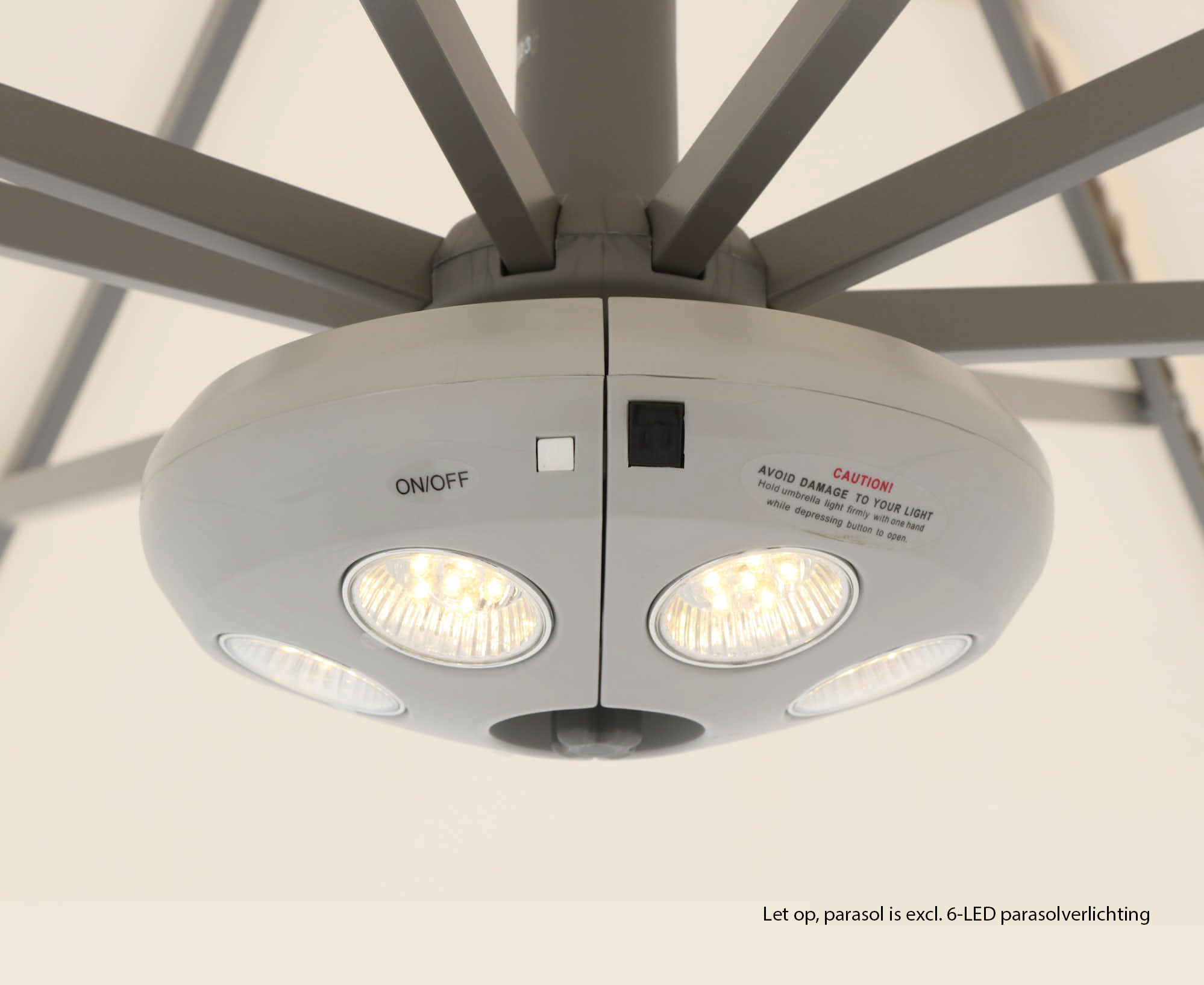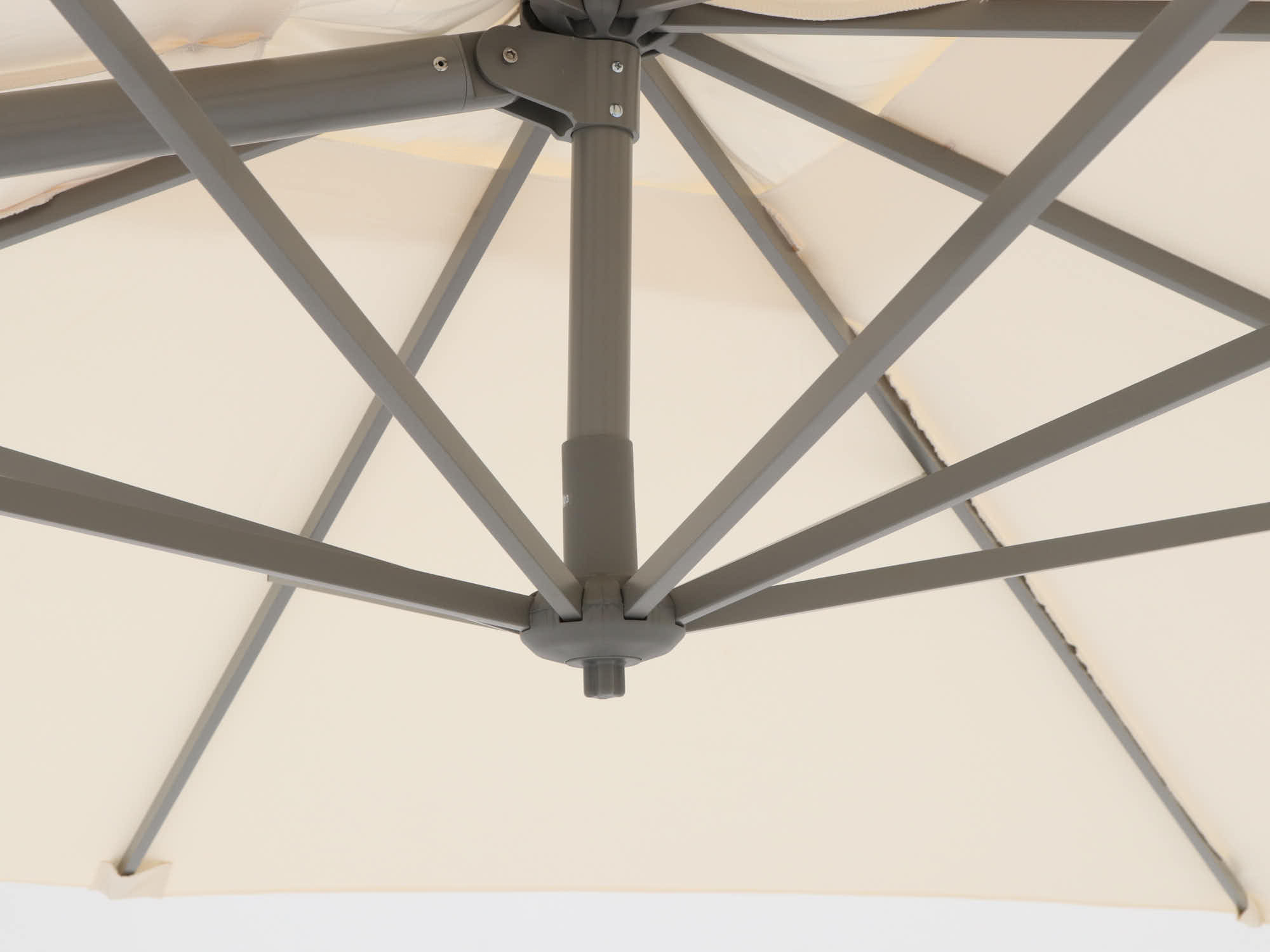 Dankzij de zwevende constructie zit er niks in de weg. Je hebt alle ruimte onder het doek, ideaal bij een eettafel of loungeset.