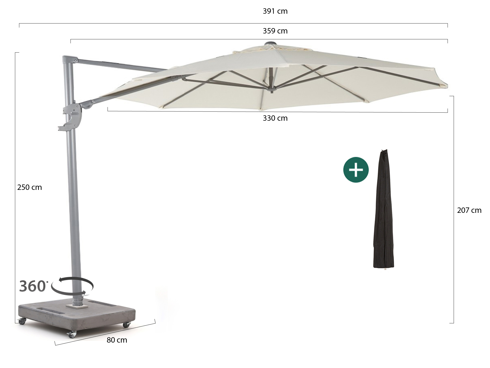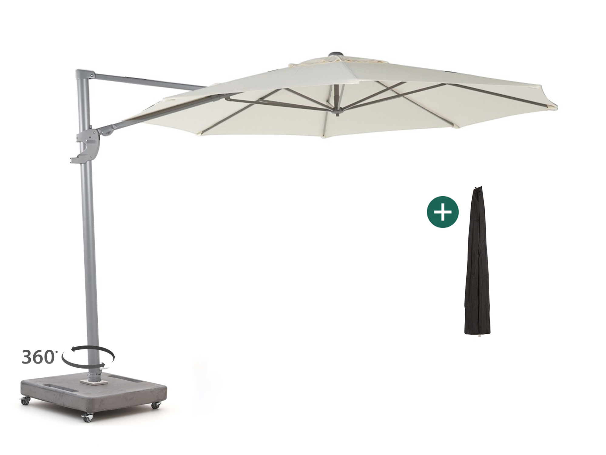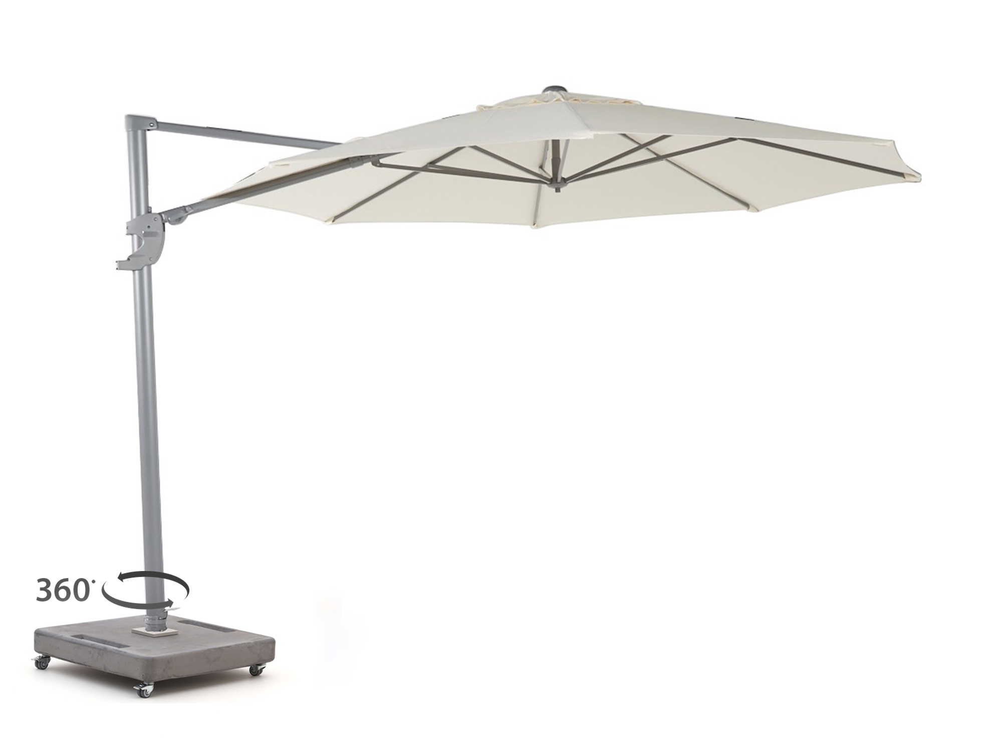 Je draait de parasol in 360 graden makkelijk met de zon mee. Zo zit je de hele dag lekker in de schaduw, zonder je stoel te verplaatsen.
